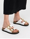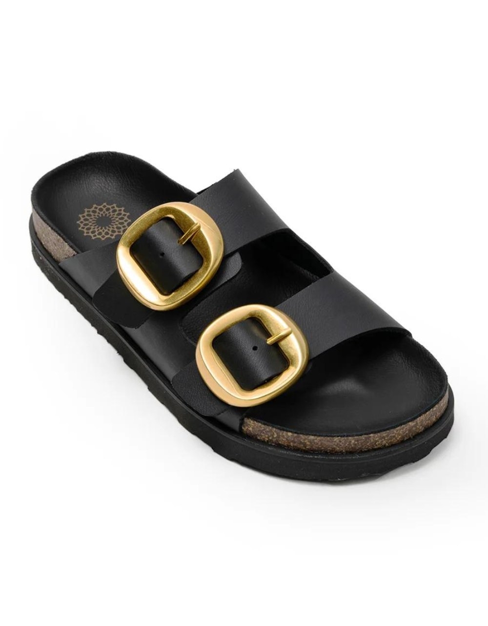 Δερμάτινα σανδάλια Ελληνικής κατασκευής με χρυσό τοκά Μαύρο