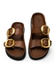 Δερμάτινα σανδάλια Ελληνικής κατασκευής της εταιρείας ATENEO. Διαθέτουν διπλή φάσα με χρυσό τοκά, ενώ ο σχεδιασμός τους τα καθιστά ιδιαίτερα άνετα στο βάδισμα.