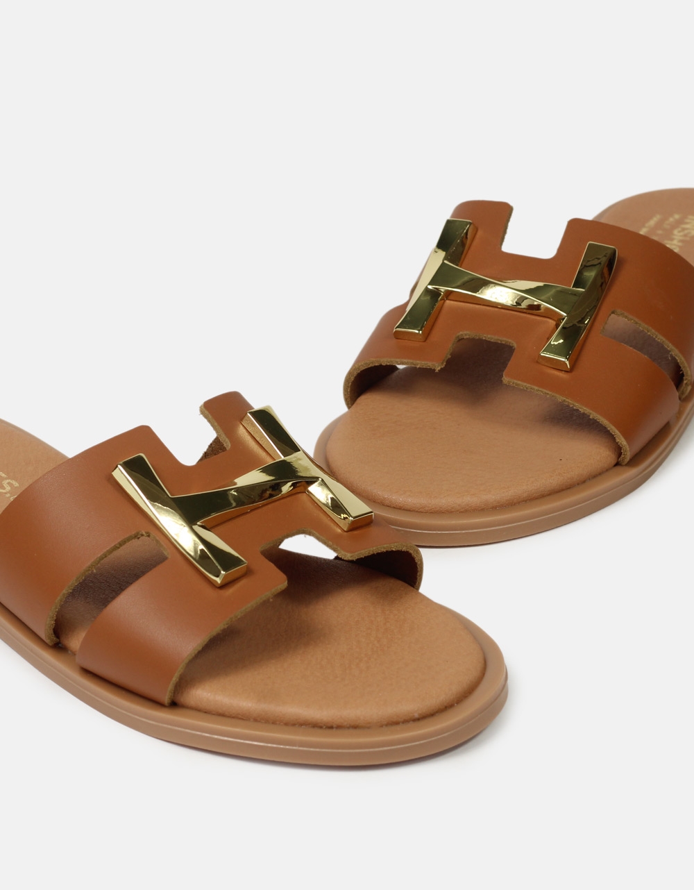 Δερμάτινα flat σανδάλια Ελληνικής κατασκευής, με μεταλλική αγκράφα. Διαθέτουν ελαστική σόλα και αφρώδη πάτο για άνετο και σταθερό βάδισμα.