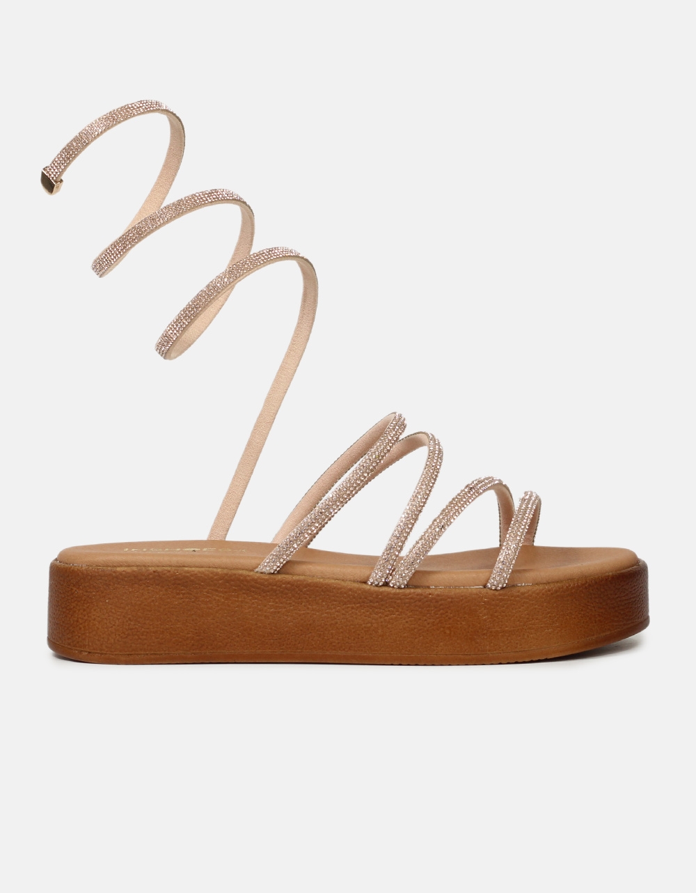 Lace up σανδάλια flatforms, Ελληνικής κατασκευής με λουράκια από strass. Διαθέτουν αφρώδη πάτο και ελαστική σόλα για άνετο βάδισμα.