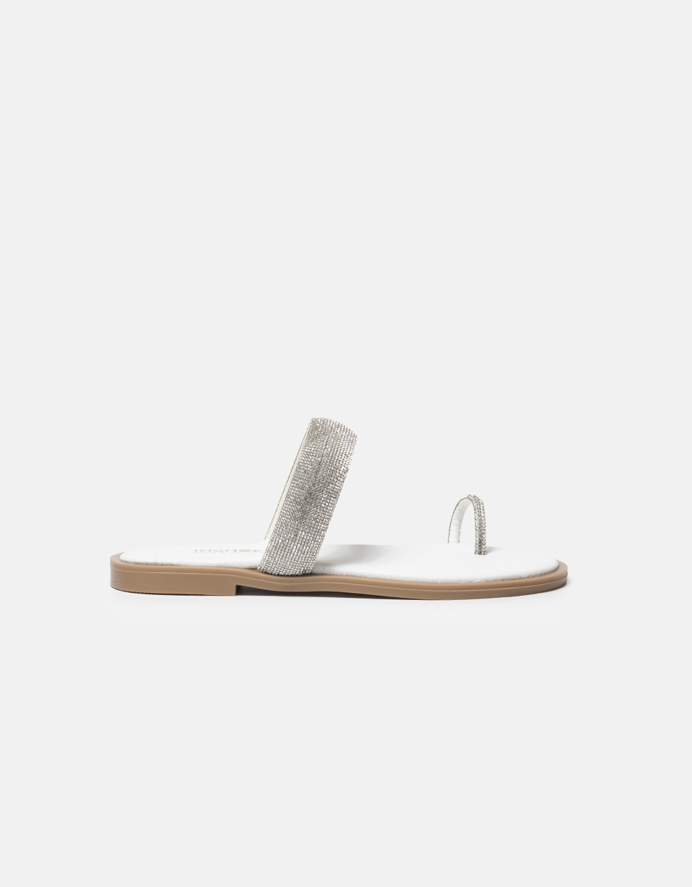 Μονόχρωμα flat σανδάλια Ελληνικής κατασκευής με strass Λευκό
