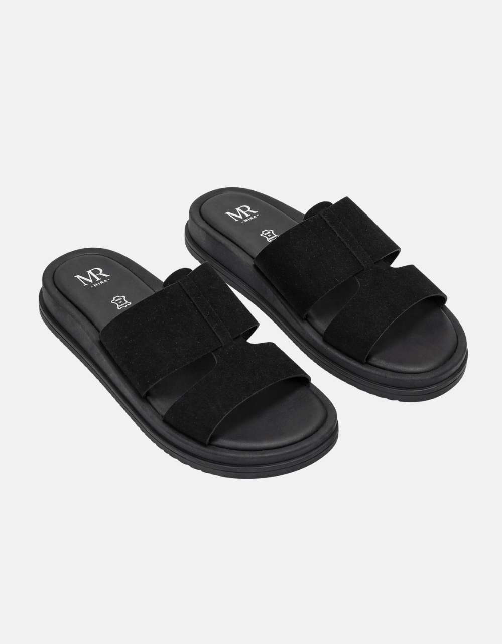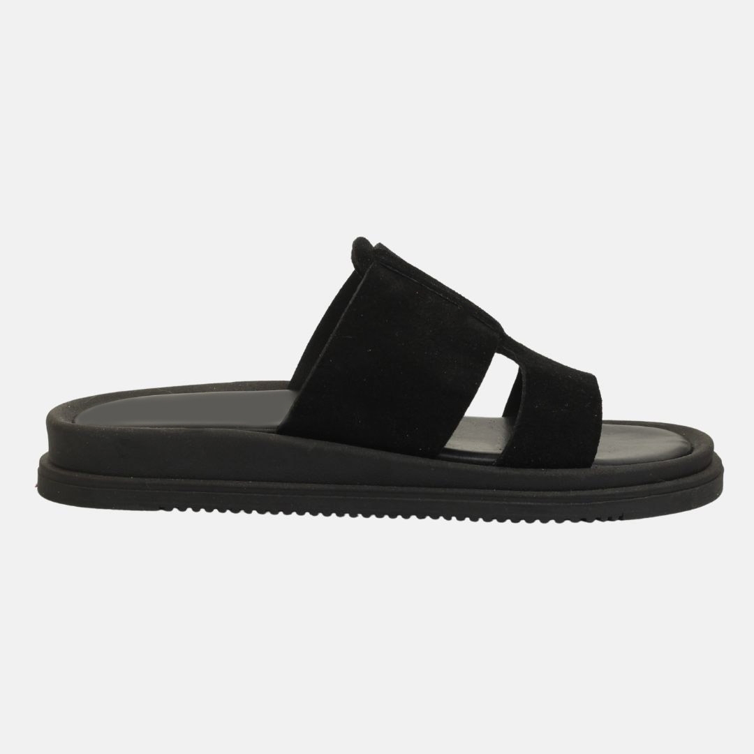 Σανδάλια δερμάτινα Ελληνικής κατασκευής με δίπλη φάσα Μαύρο