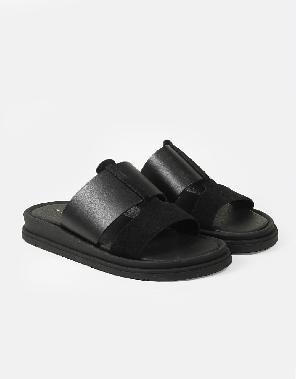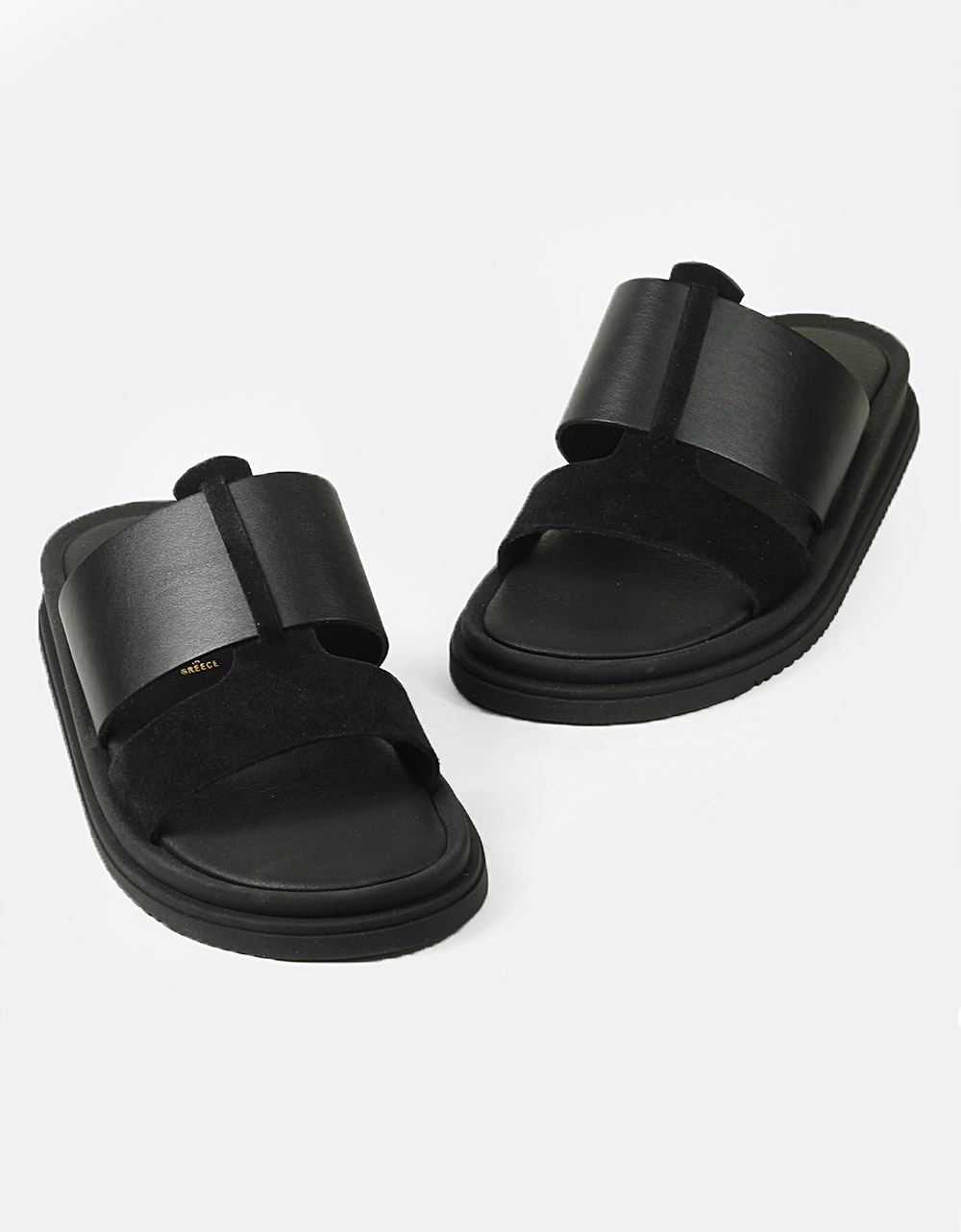 Σανδάλια δερμάτινα με δίπλη φάσα και συνδιασμό υλικών Μαύρο