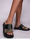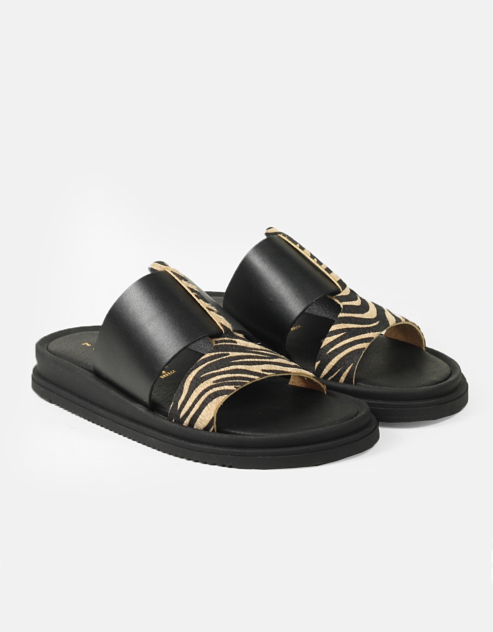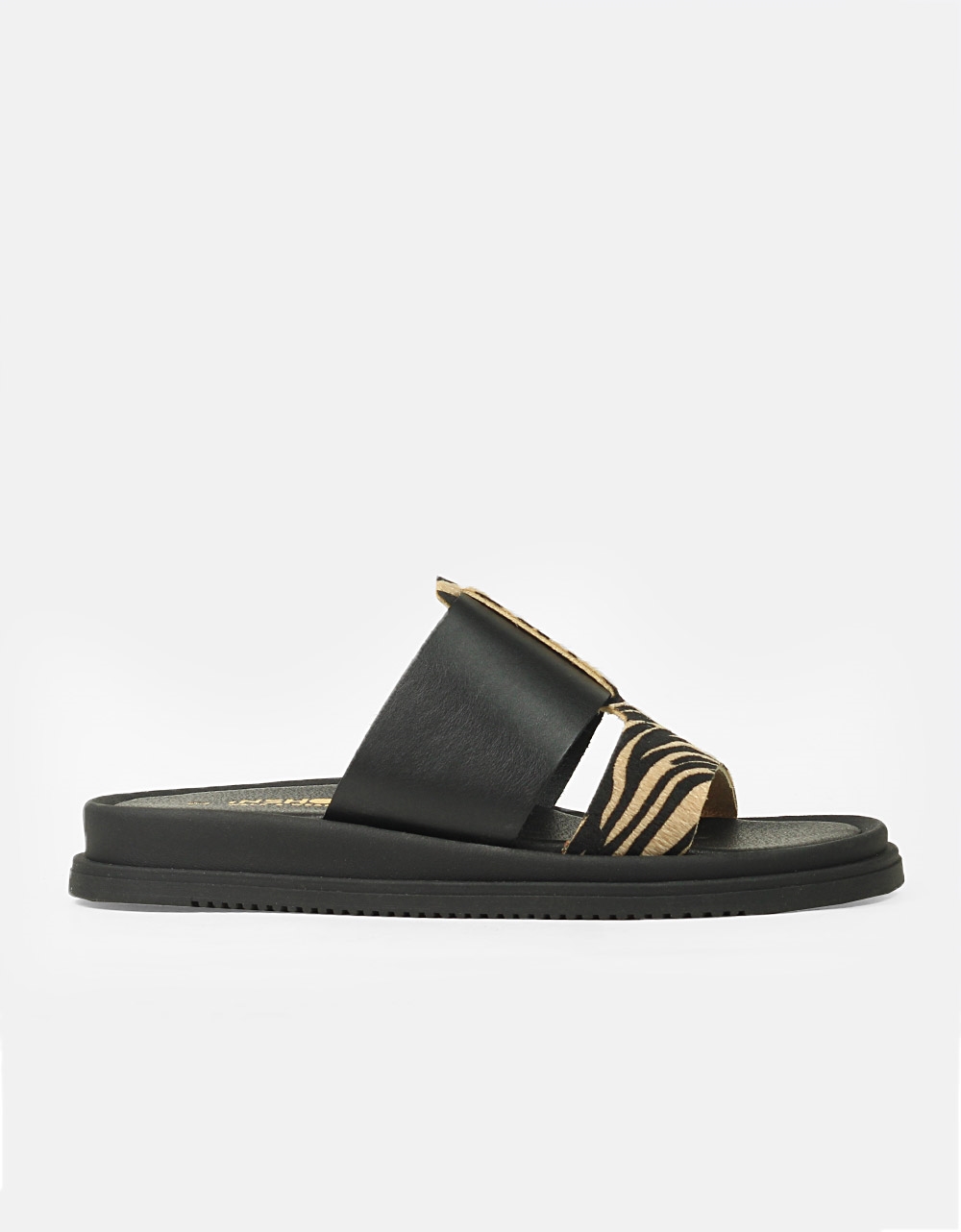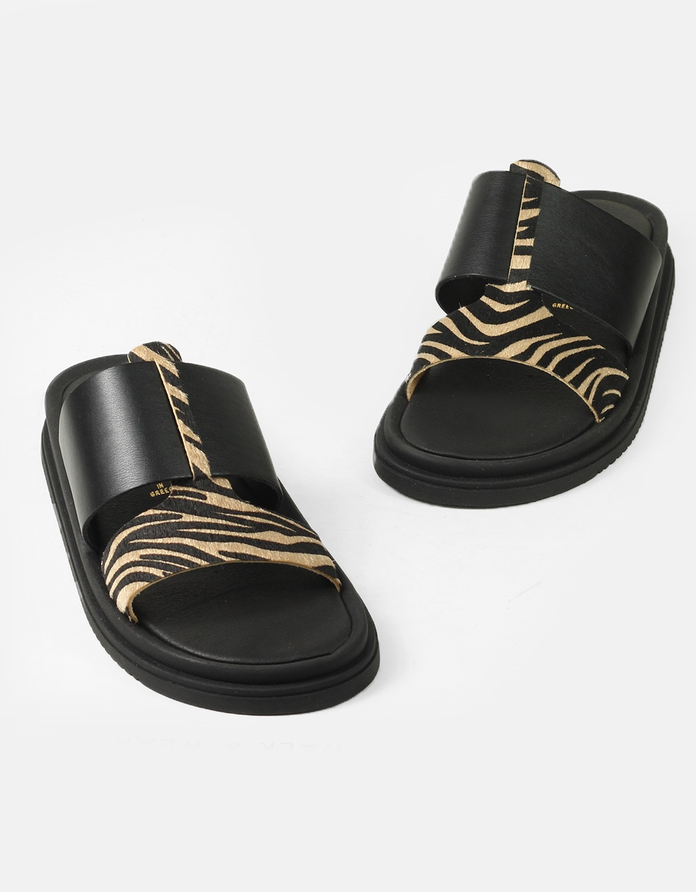 Σανδάλια δερμάτινα με δίπλη φάσα και συνδιασμό υλικών Ζέμπρα