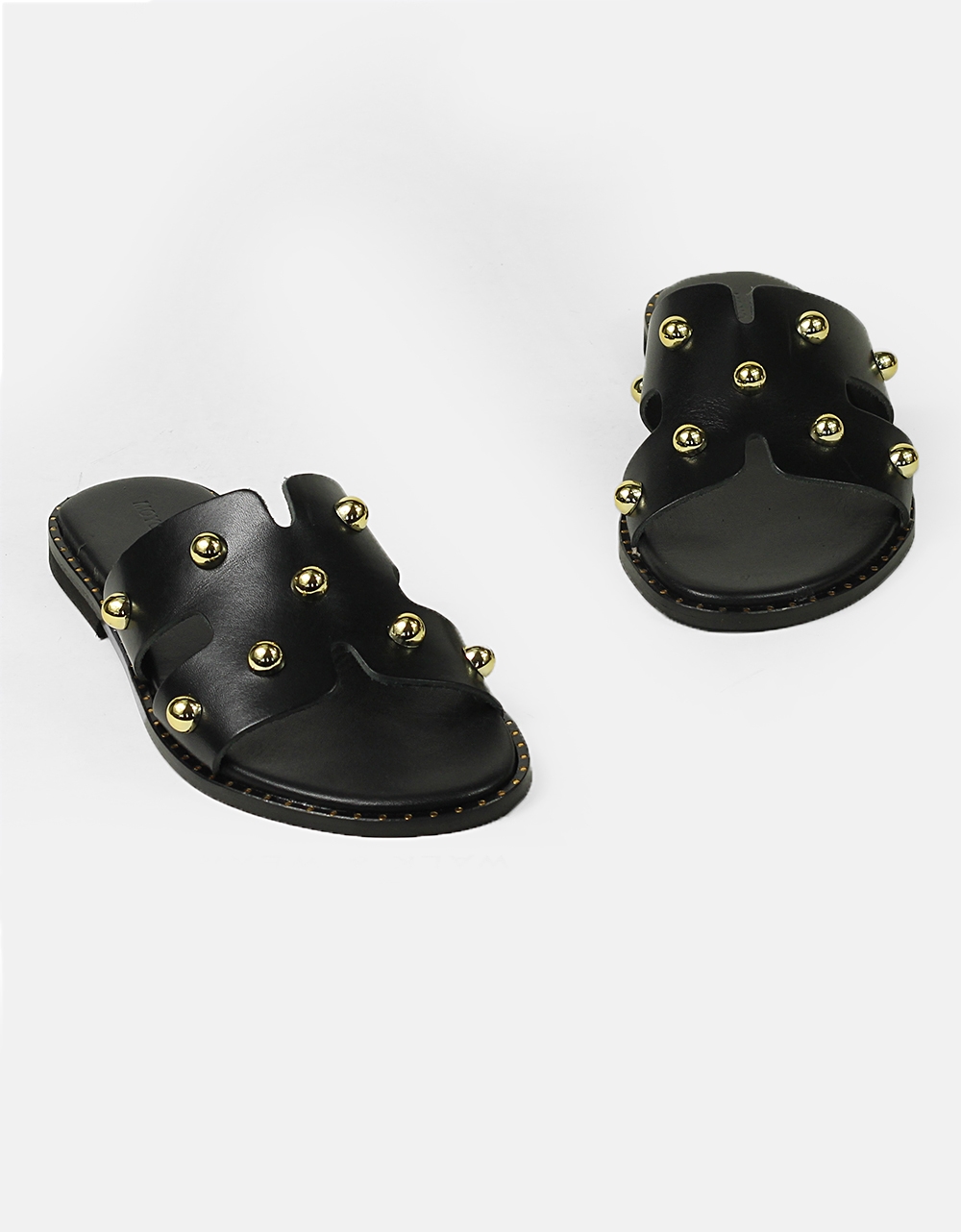 Σανδάλια Ελληνικής κατασκευής με φάσα και μεταλλικά στοιχεία Μαύρο