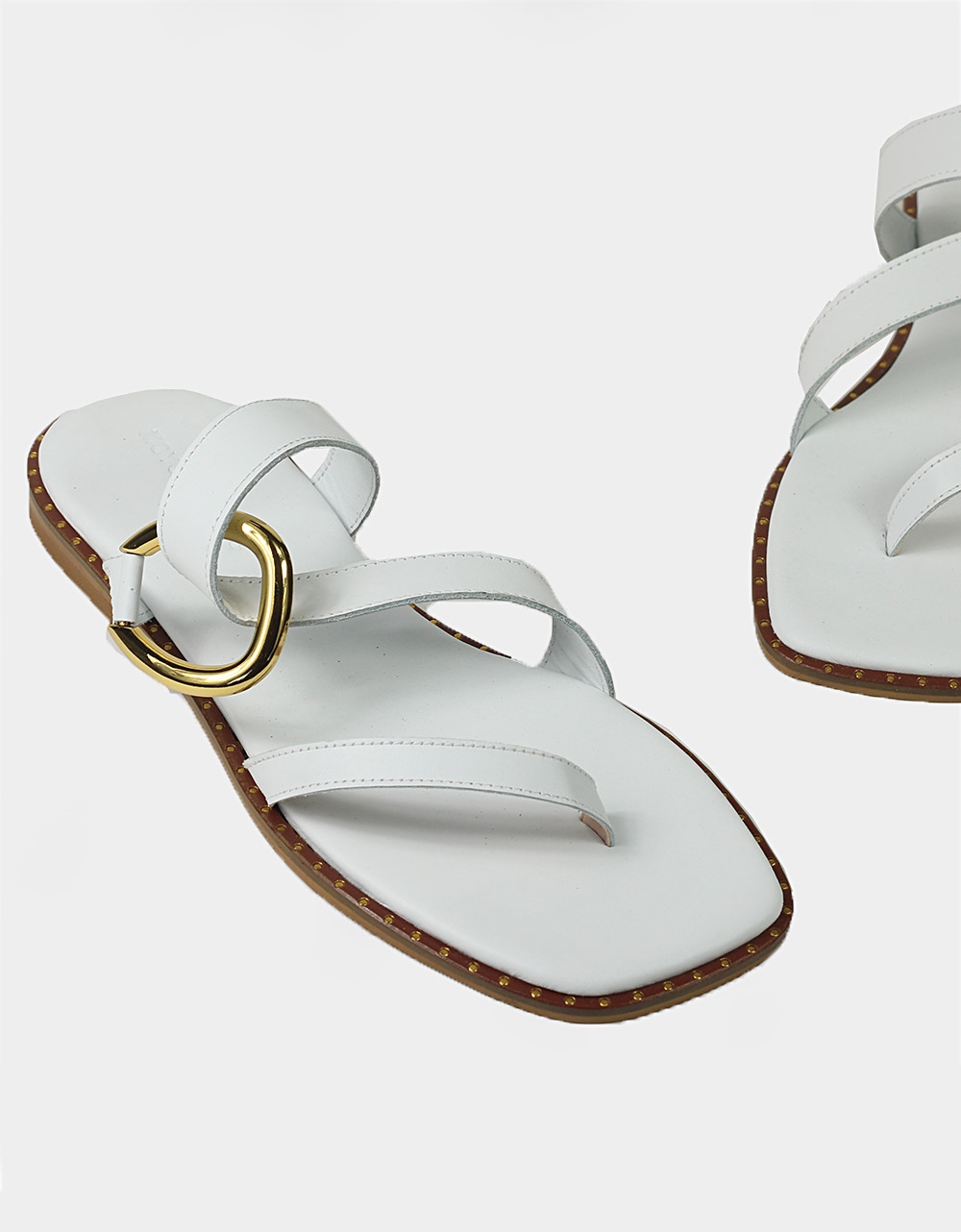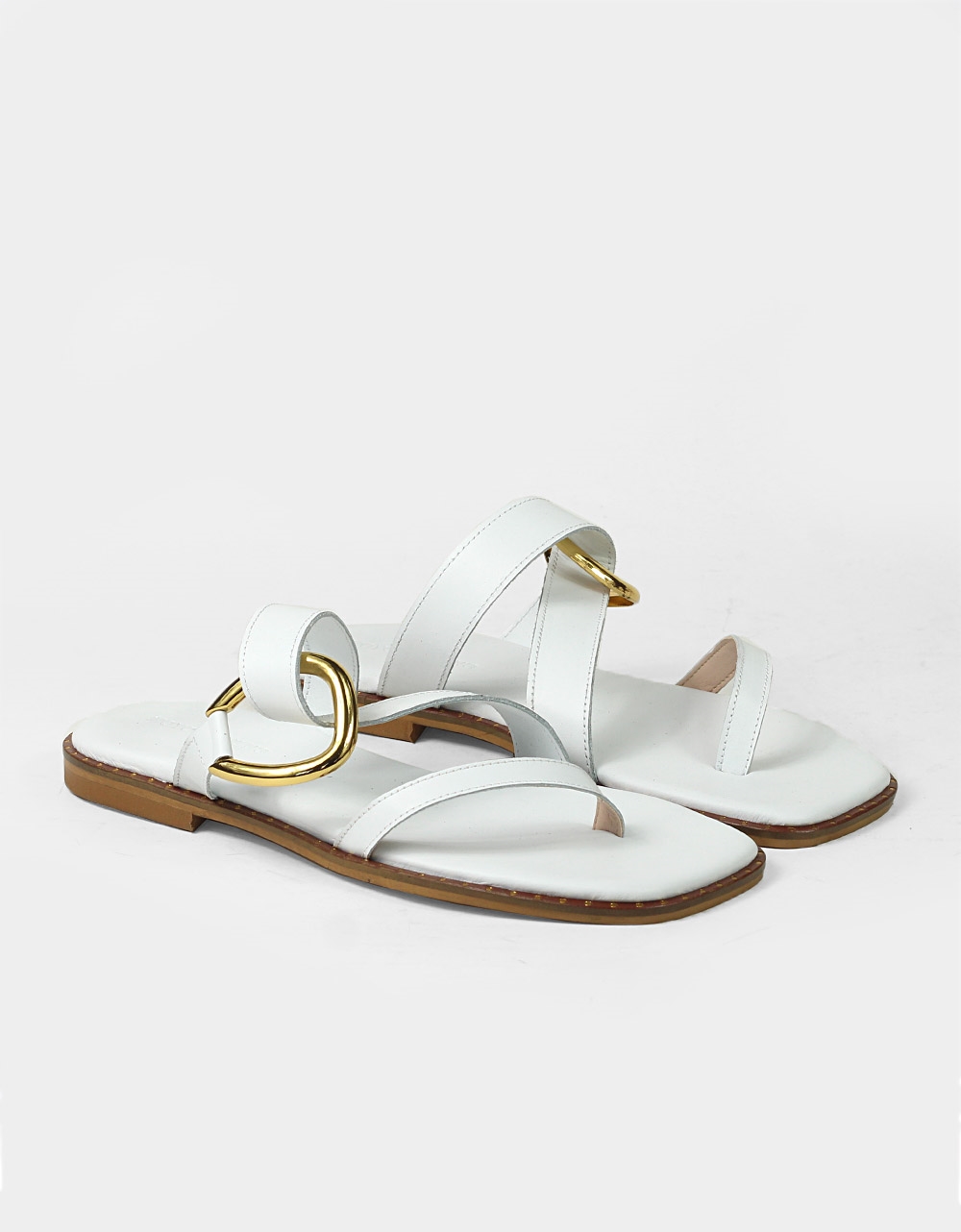 Δερμάτινα σανδάλια Ελληνικής Κατασκευής σε καρέ γραμμή με τοκά Λευκό