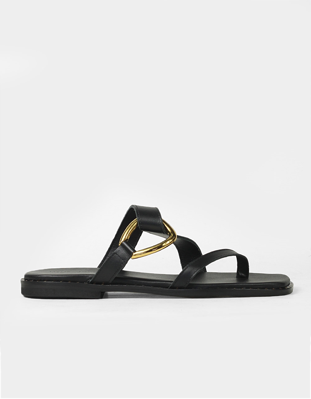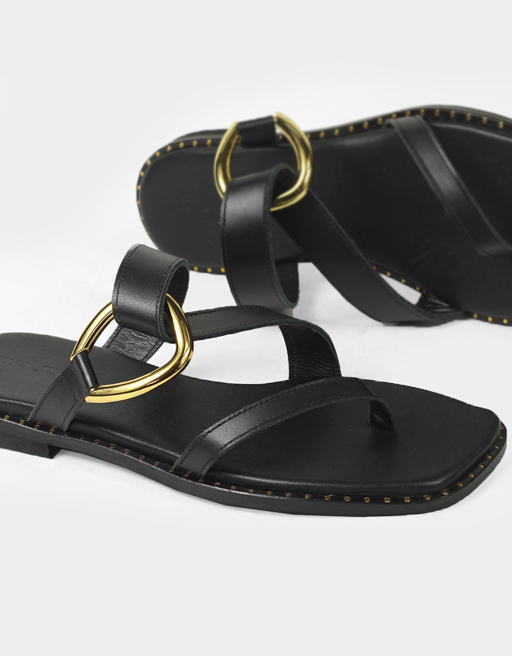Δερμάτινα σανδάλια Ελληνικής Κατασκευής σε καρέ γραμμή με τοκά Μαύρο