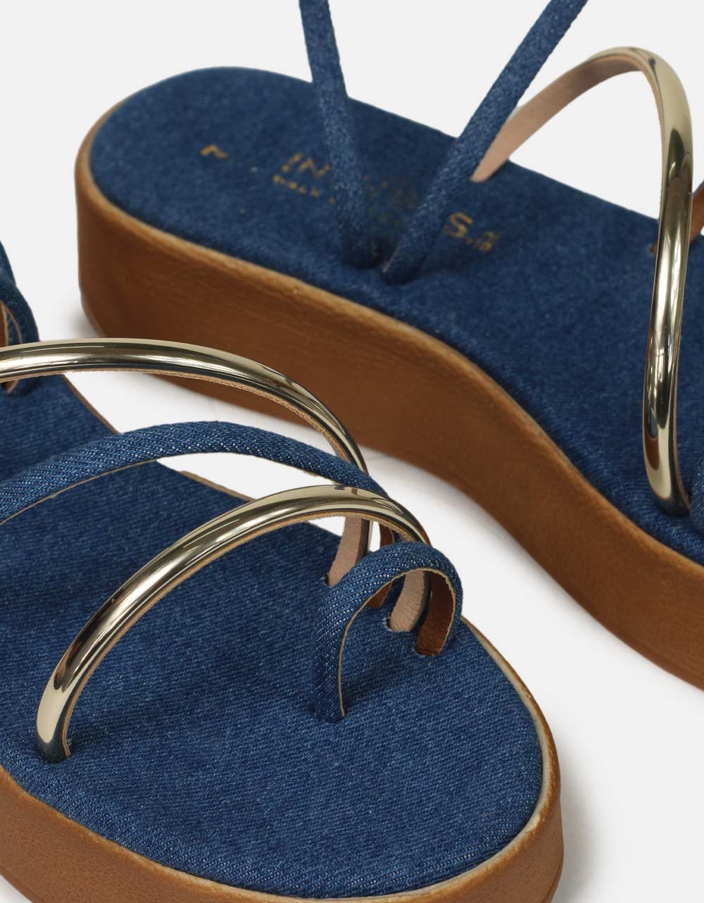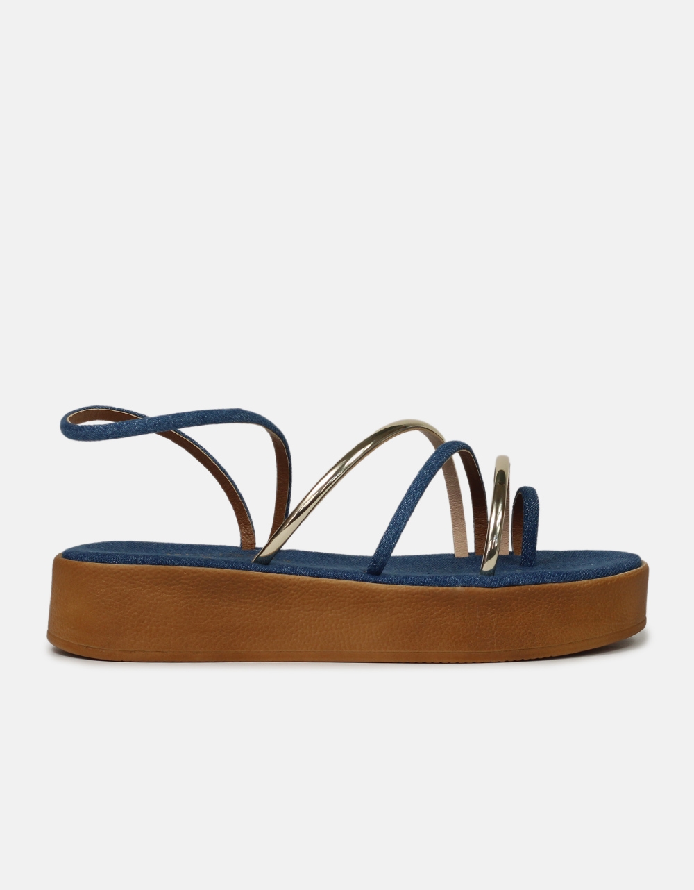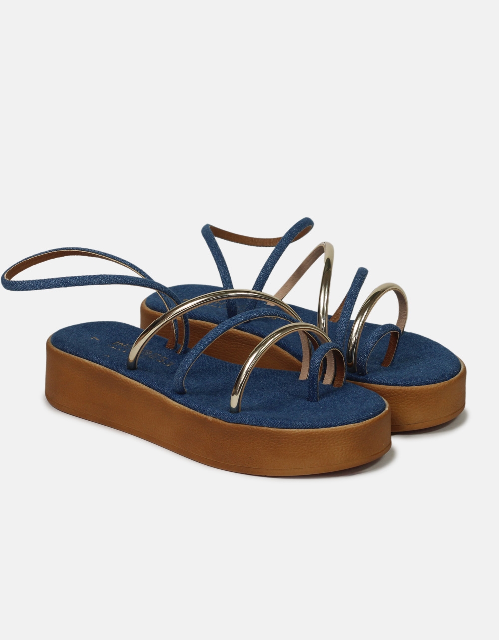 Σανδάλια Ελληνικής κατασκευής με λουράκια και toe ring Τζιν