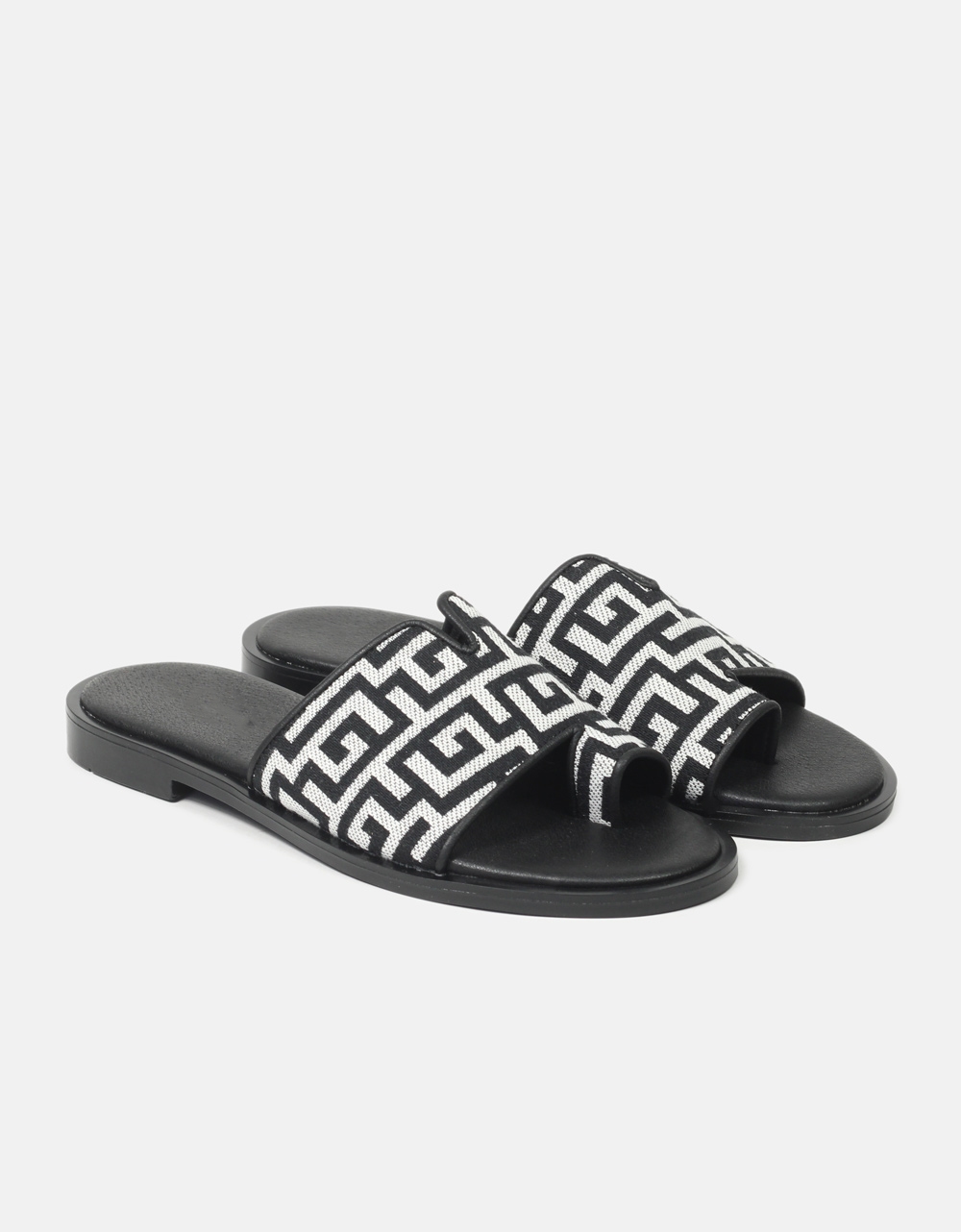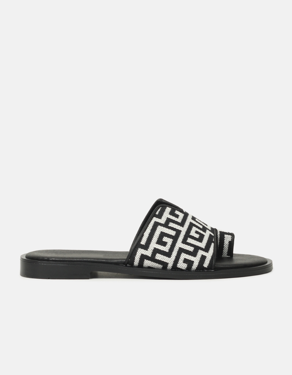 Σανδάλια flat Ελληνικής κατασκευής με μοτίβο μαιάνδρου Μαύρο