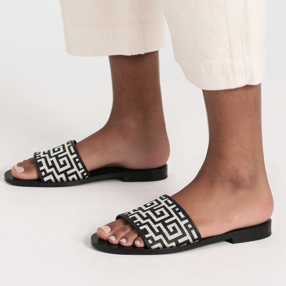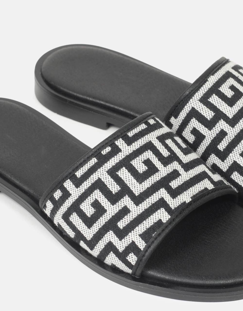 Σανδάλια flat Ελληνικής κατασκευής με μοτίβο μαιάνδρου Μαύρο