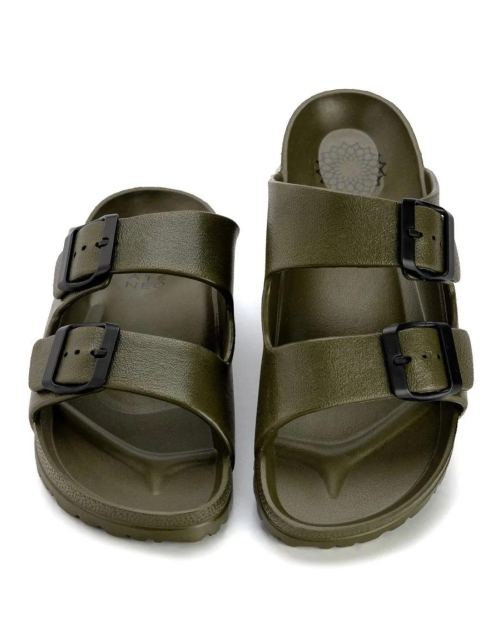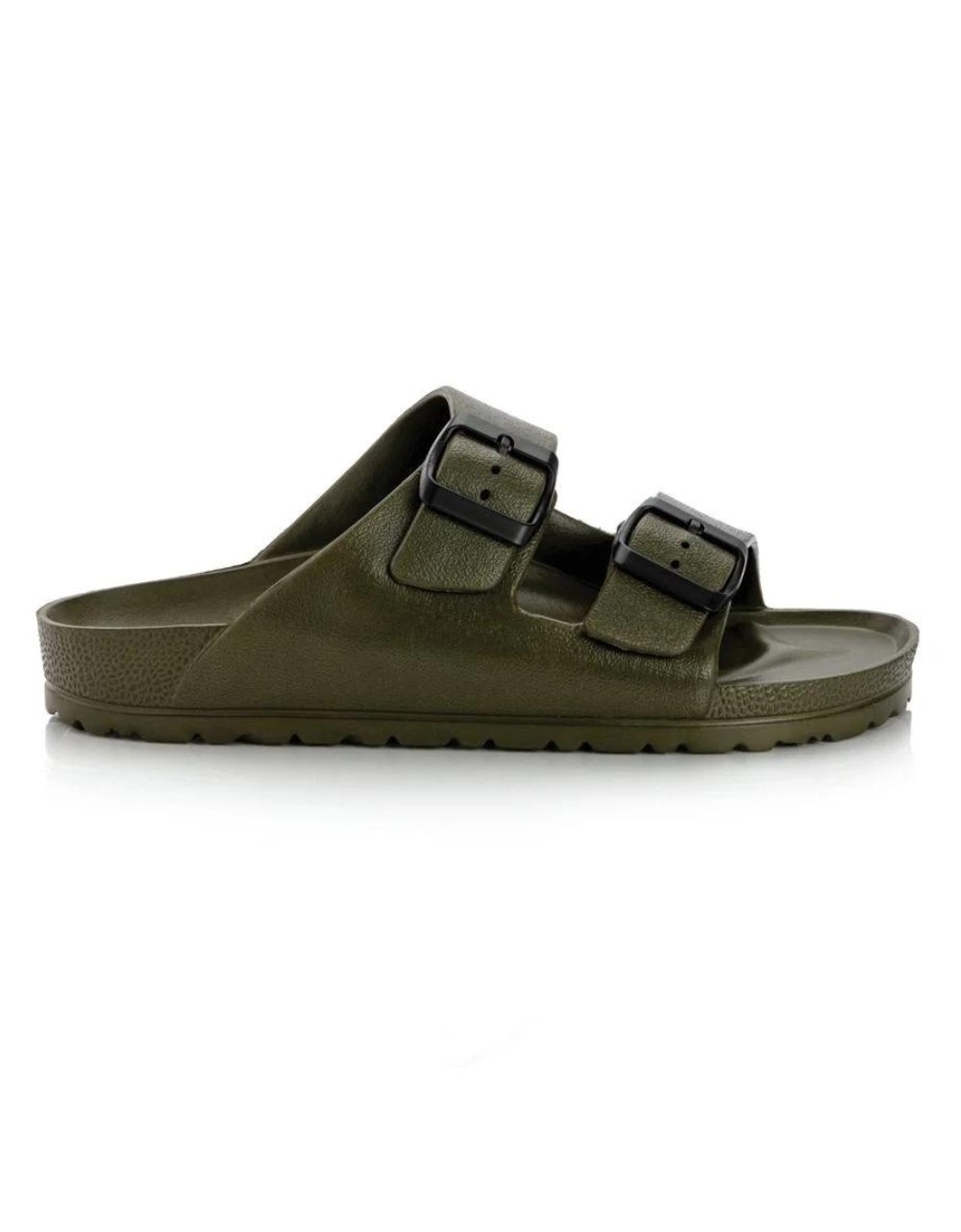 Σανδάλια flat Ελληνικής κατασκευής με διπλή φάσα Χακί