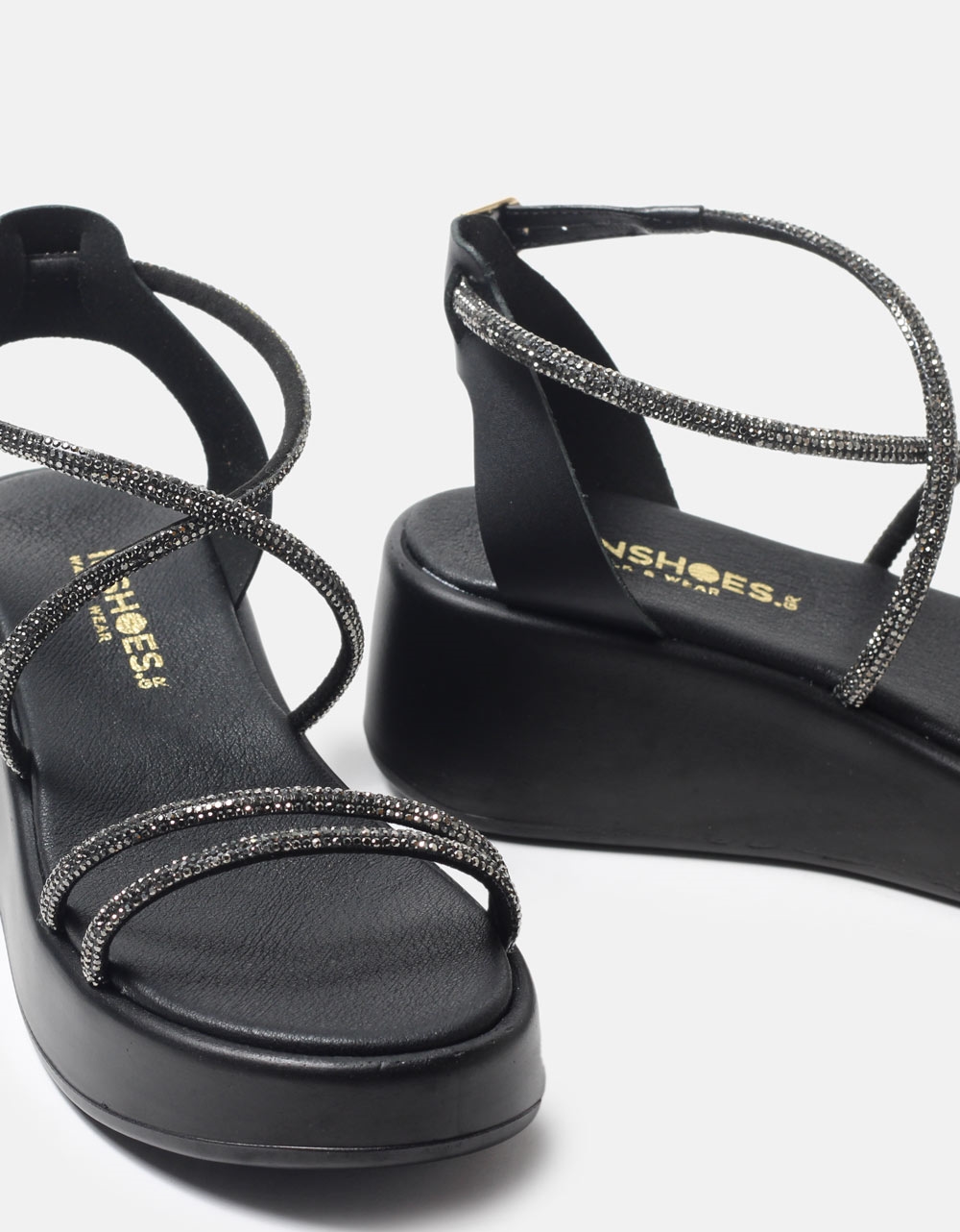 Δερμάτινα σανδάλια flatforms Ελληνικής κατασκευής. Διαθέτουν αφρώδη πάτο από γνήσιο δέρμα για άνετο πάτημα και λουράκια από strass.