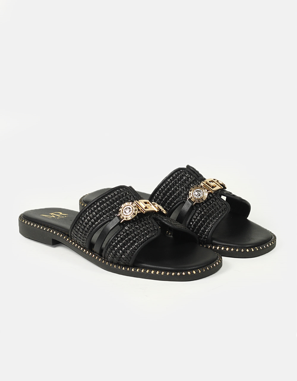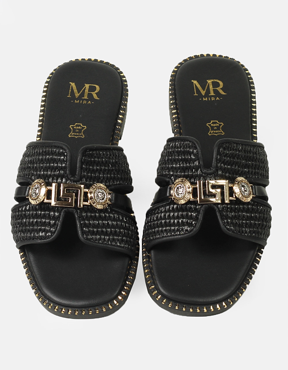 Σανδάλια ψάθινα Ελληνικής Κατασκευής με αγκράφα Μαύρο