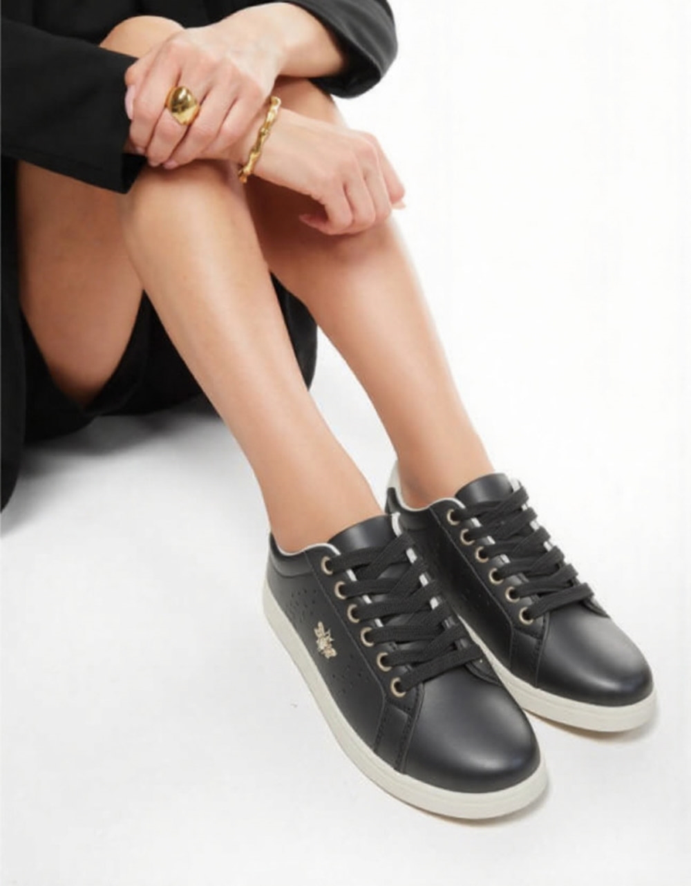 Βasic sneakers με διακοσμητικό από strass στο πλάι. Διαθέτουν ελαστική αντιολισθητική σόλα προσφέροντας ιδιαίτερο μαλακό και άνετο πάτημα.