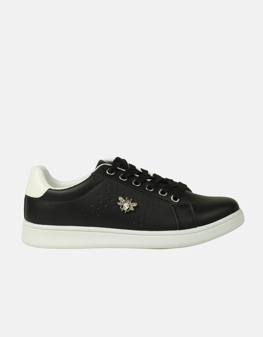 Basic sneakers με διακοσμητικό από strass Μαύρο/Λευκό