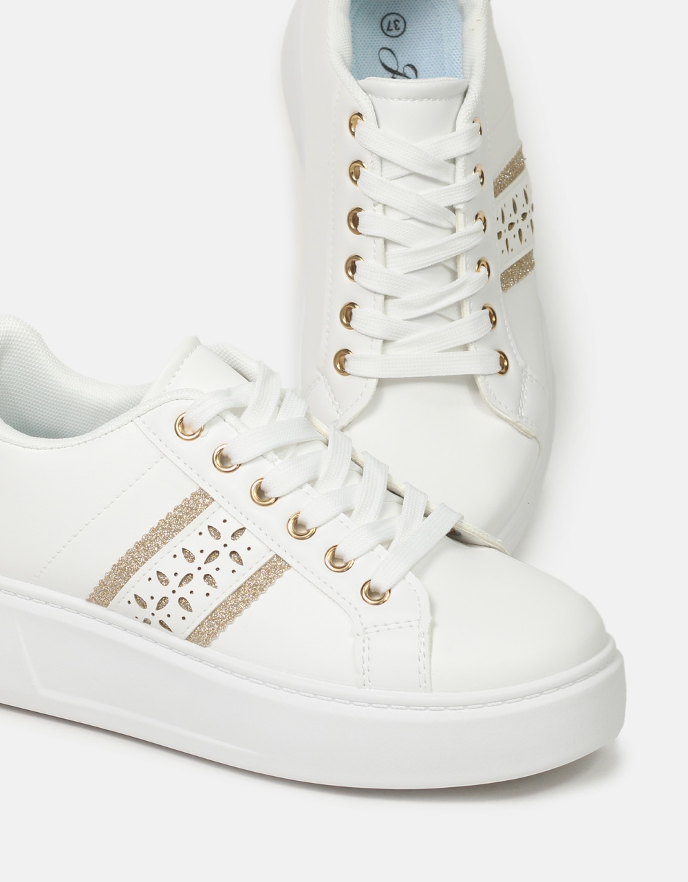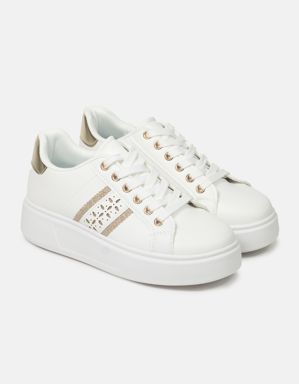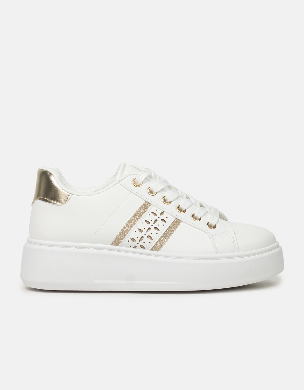 Γυναικεία sneakers με διπλή σόλα και μοτίβο στο πλάι Λευκό/Χρυσό