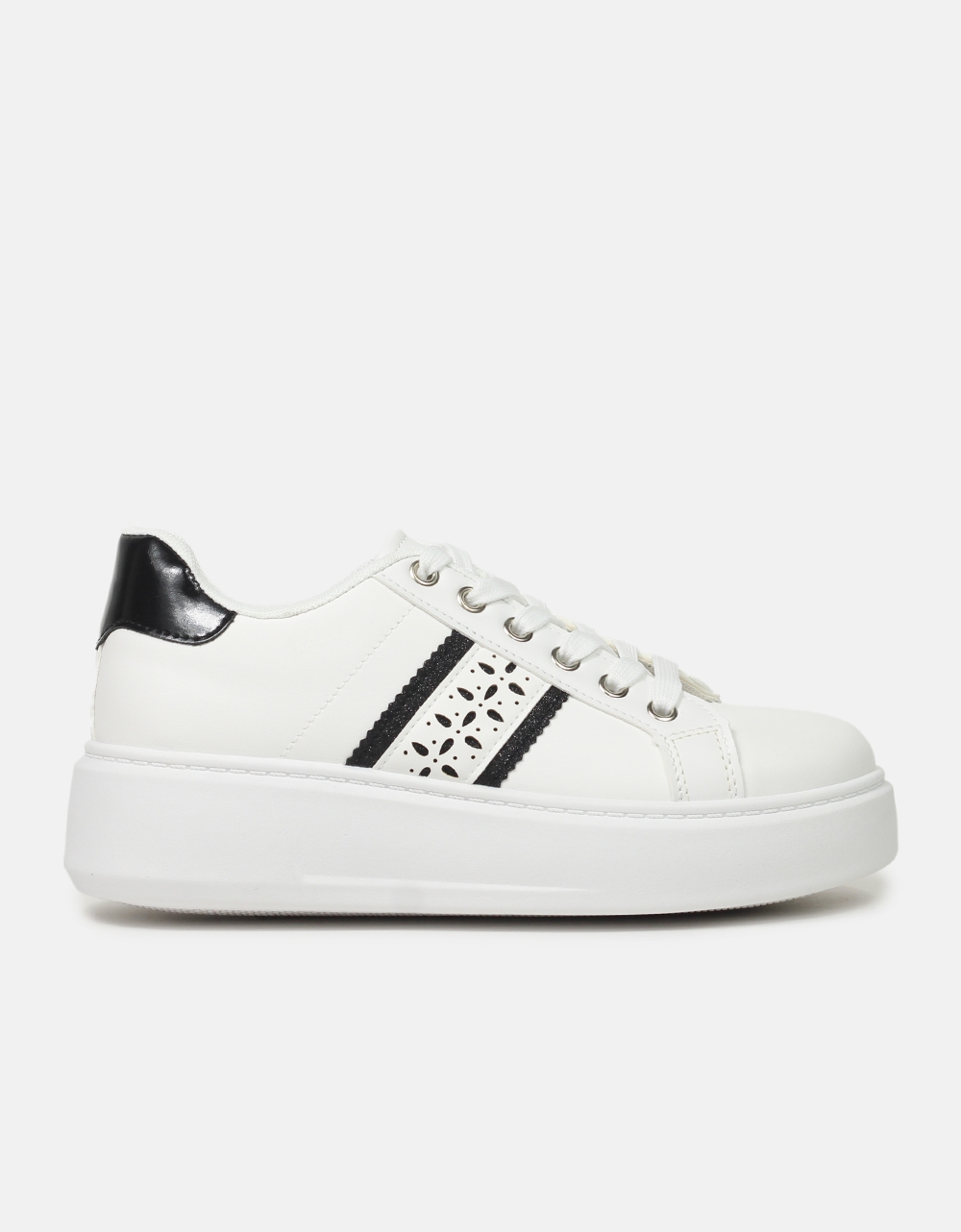 Γυναικεία sneakers με διπλή σόλα και μοτίβο στο πλάι Λευκό/Μαύρο