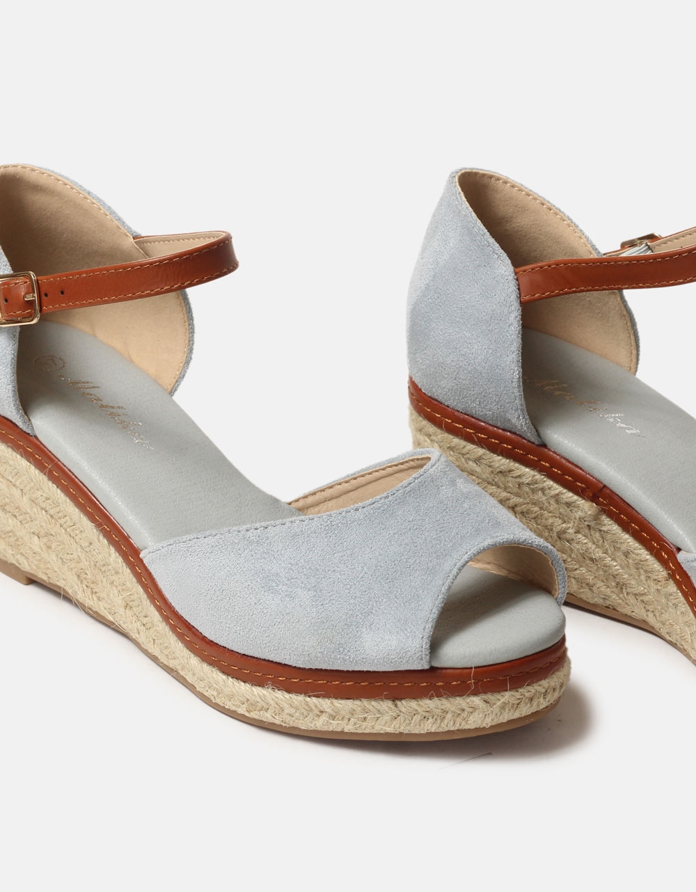 Εσπαντρίγιες peep toe Ελληνικής κατασκευής με μπαρέτα Σιέλ