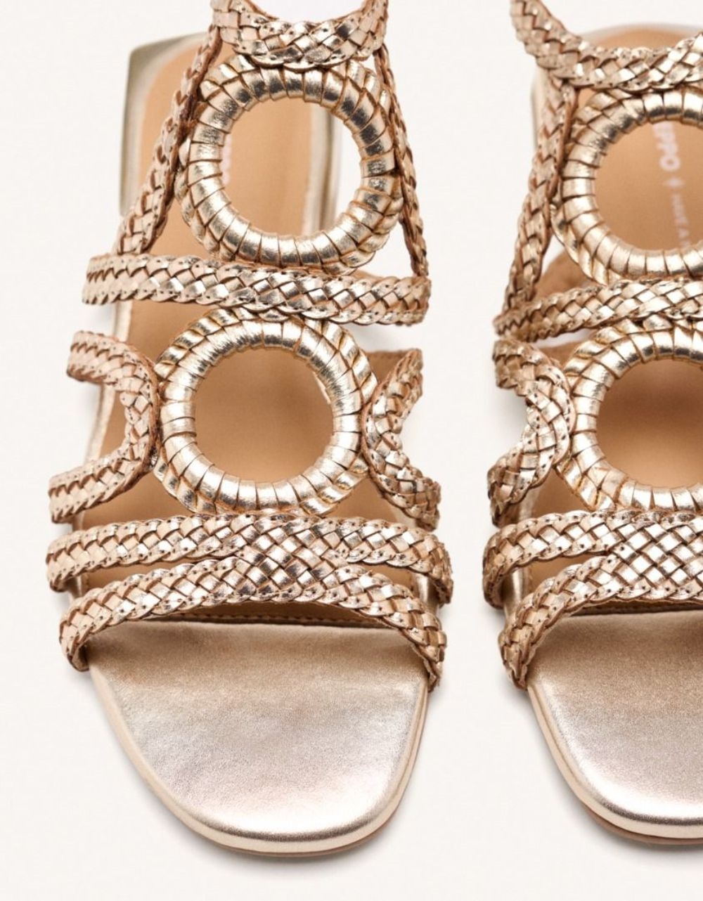 Δερμάτινα σανδάλια Gioseppo με πλεκτά λουράκια Πλατίνα