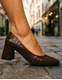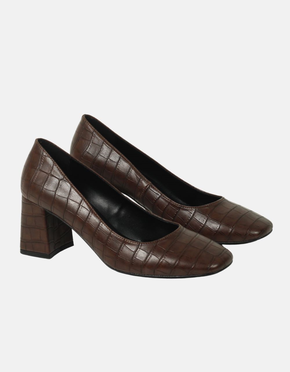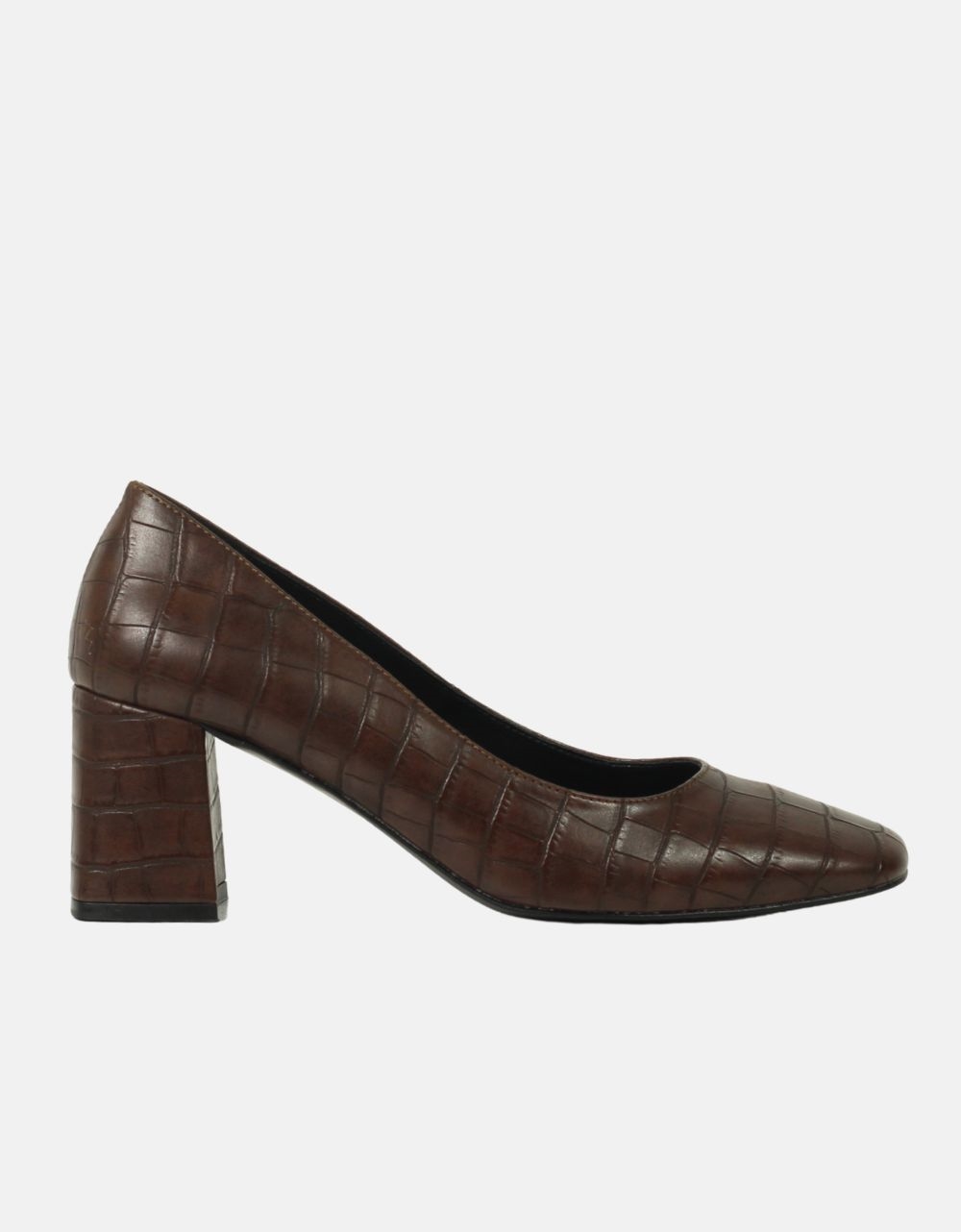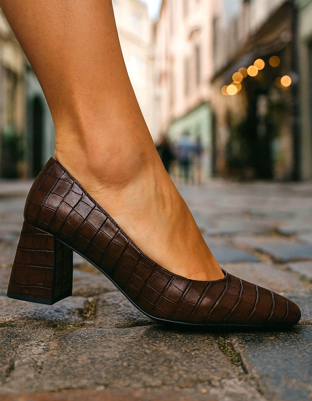 Δερμάτινες μονόχρωμες γόβες Ελληνικής κατασκευής με κροκό υφή Καφέ