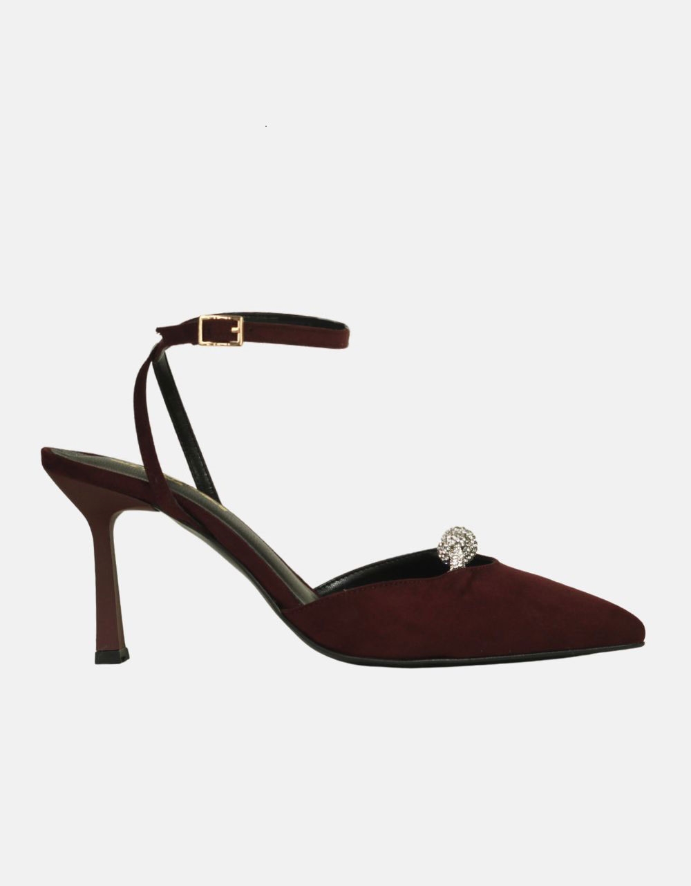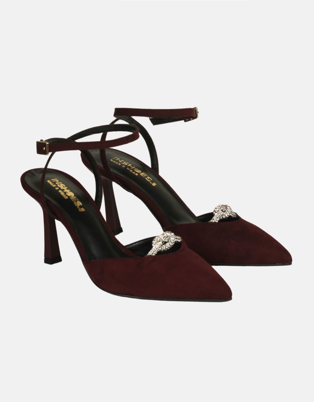 Γόβες Ελληνικής κατασκευής με χιαστί λουράκια Μπορντώ