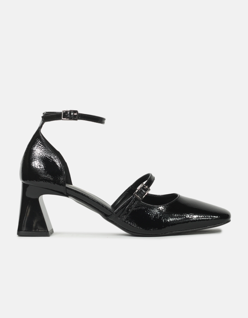 Γόβες λουστρίνι μονόχρωμες με μπαρέτα Ελληνικής κατασκευής. Διαθέτουν καρέ τακούνι και αντιολισθητική - ελαστική σόλα για άνετο βάδισμα καθόλη τη διάρκεια της ημέρας.