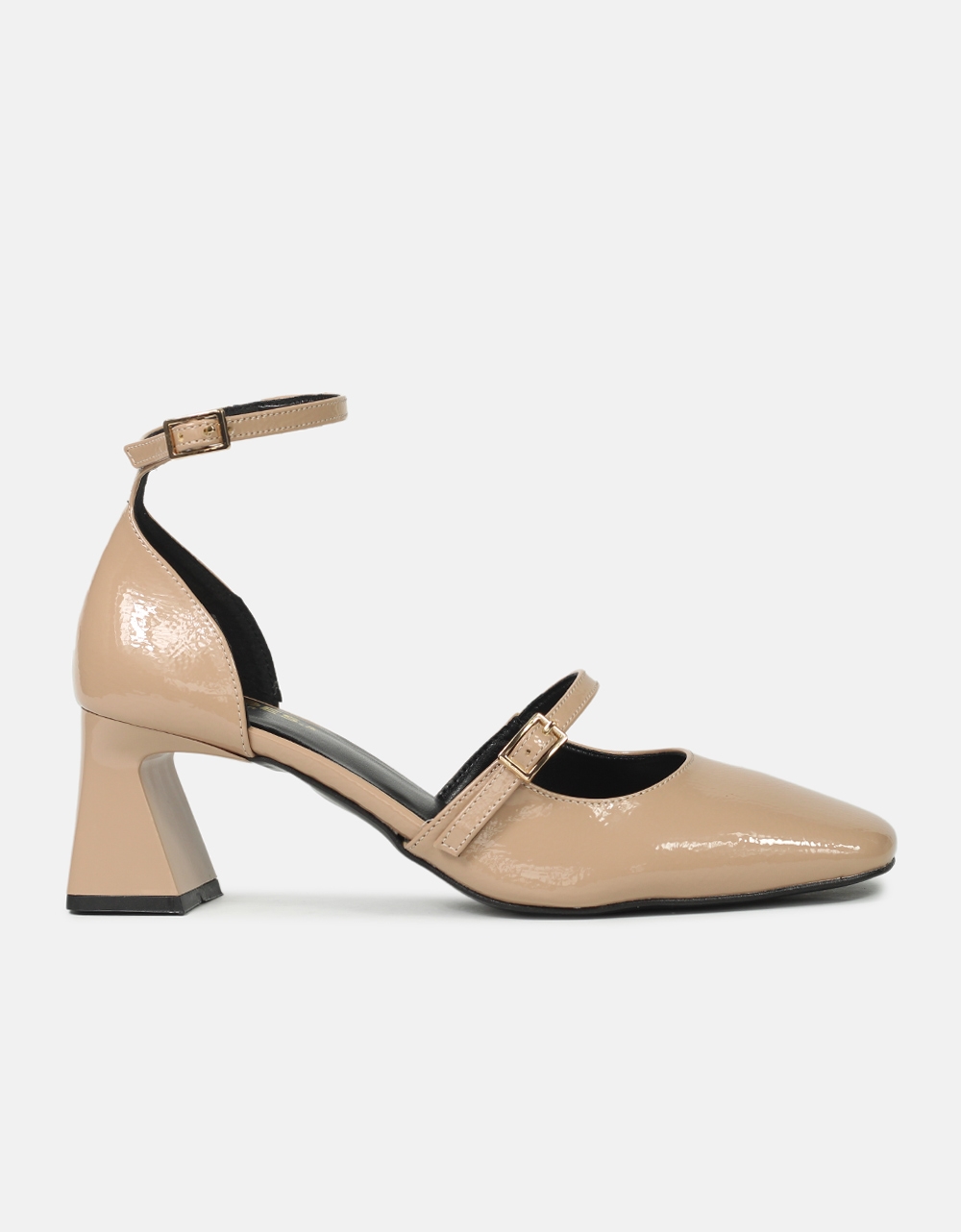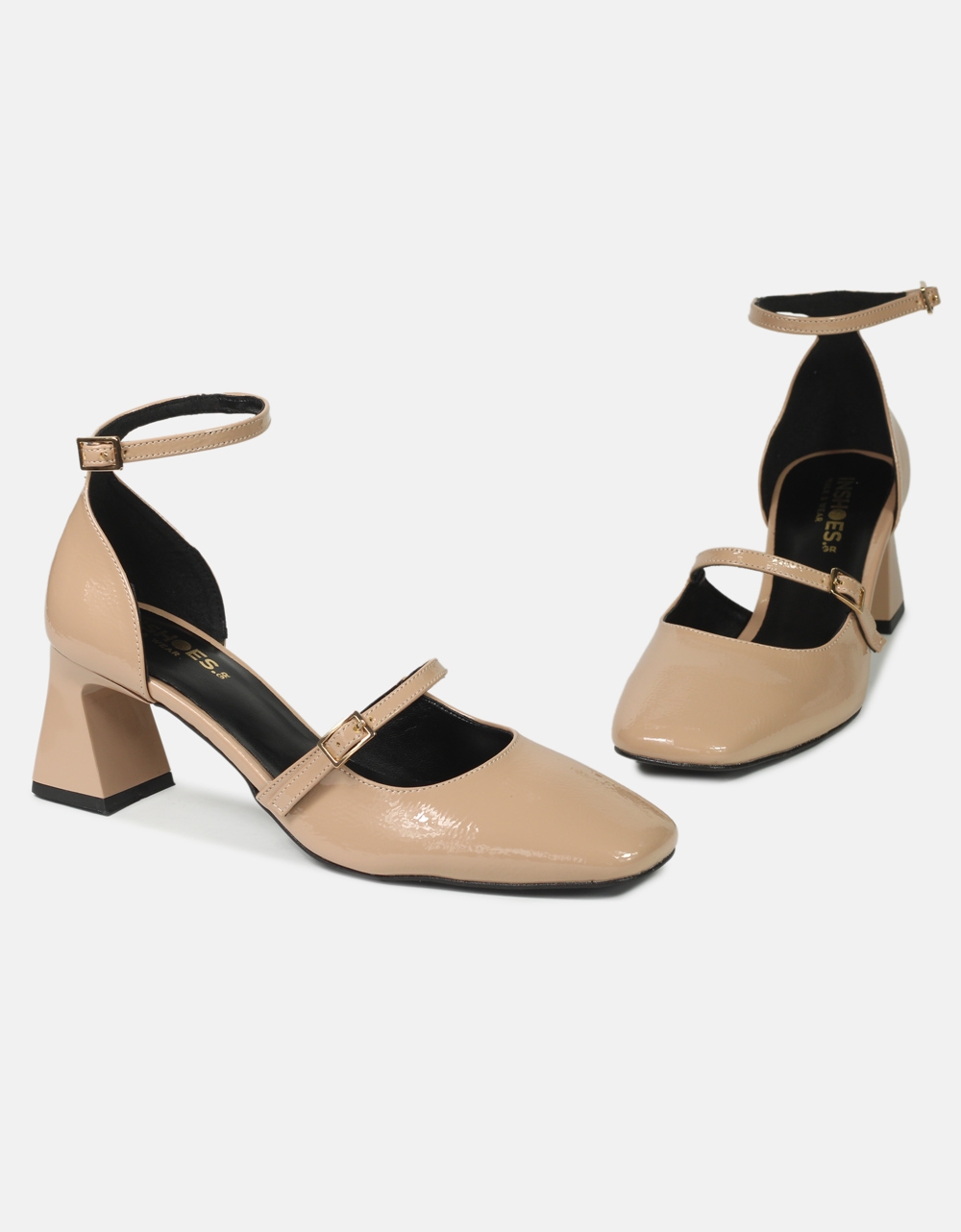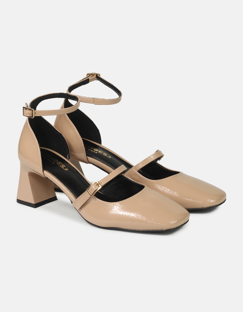 Γόβες λουστρίνι μονόχρωμες με μπαρέτα Ελληνικής κατασκευής Nude