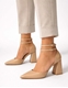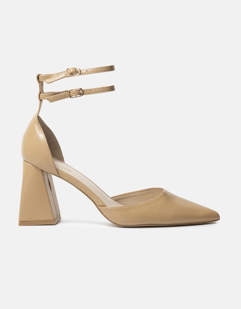 Γόβες με τετράγωνο τακούνι και διπλή μπαρέτα Κάμελ