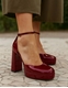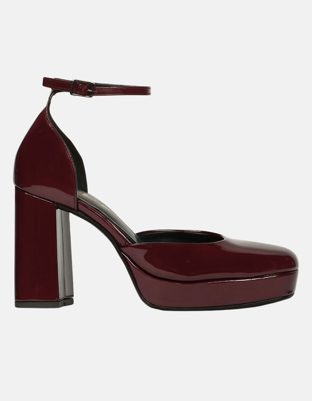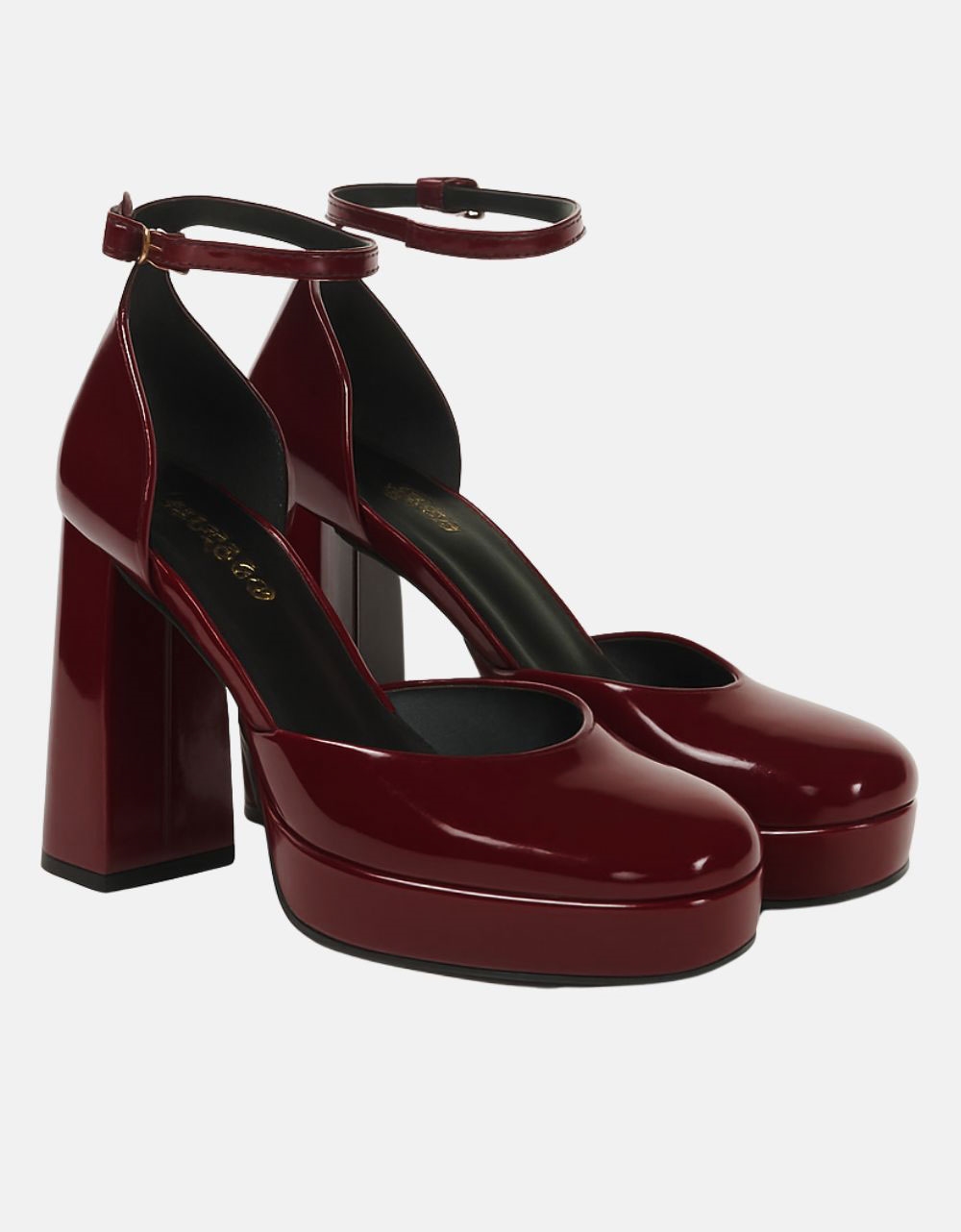 Γόβες μονόχρωμες Ελληνικής κατασκευής με τετράγωνο τακούνι Μπορντώ