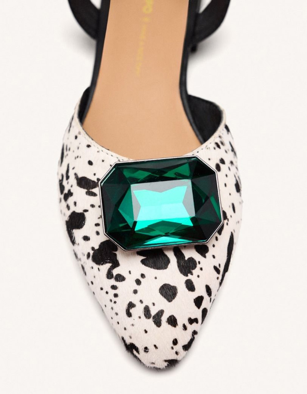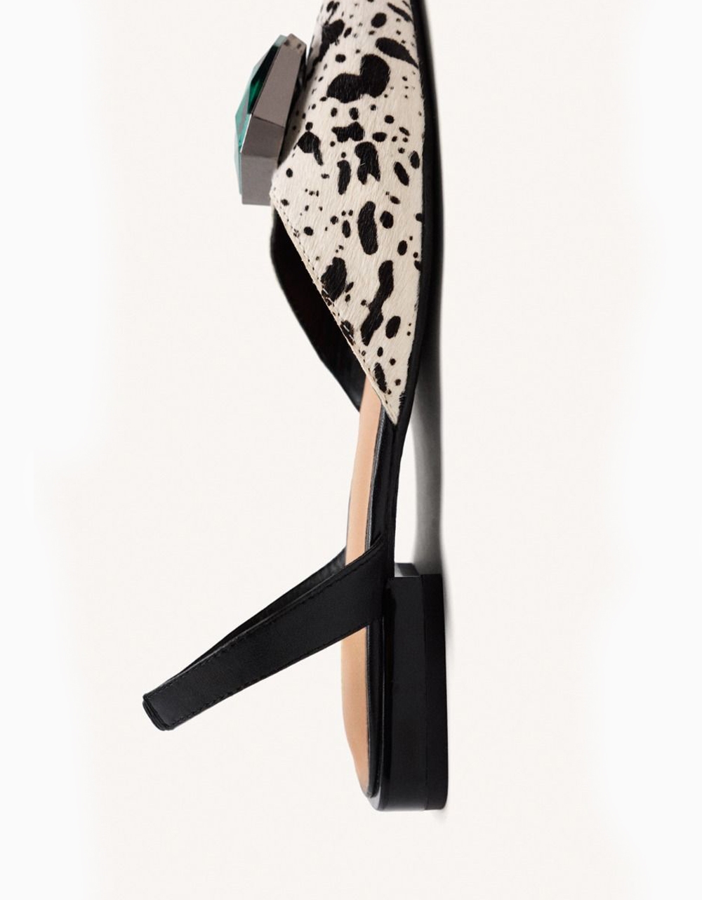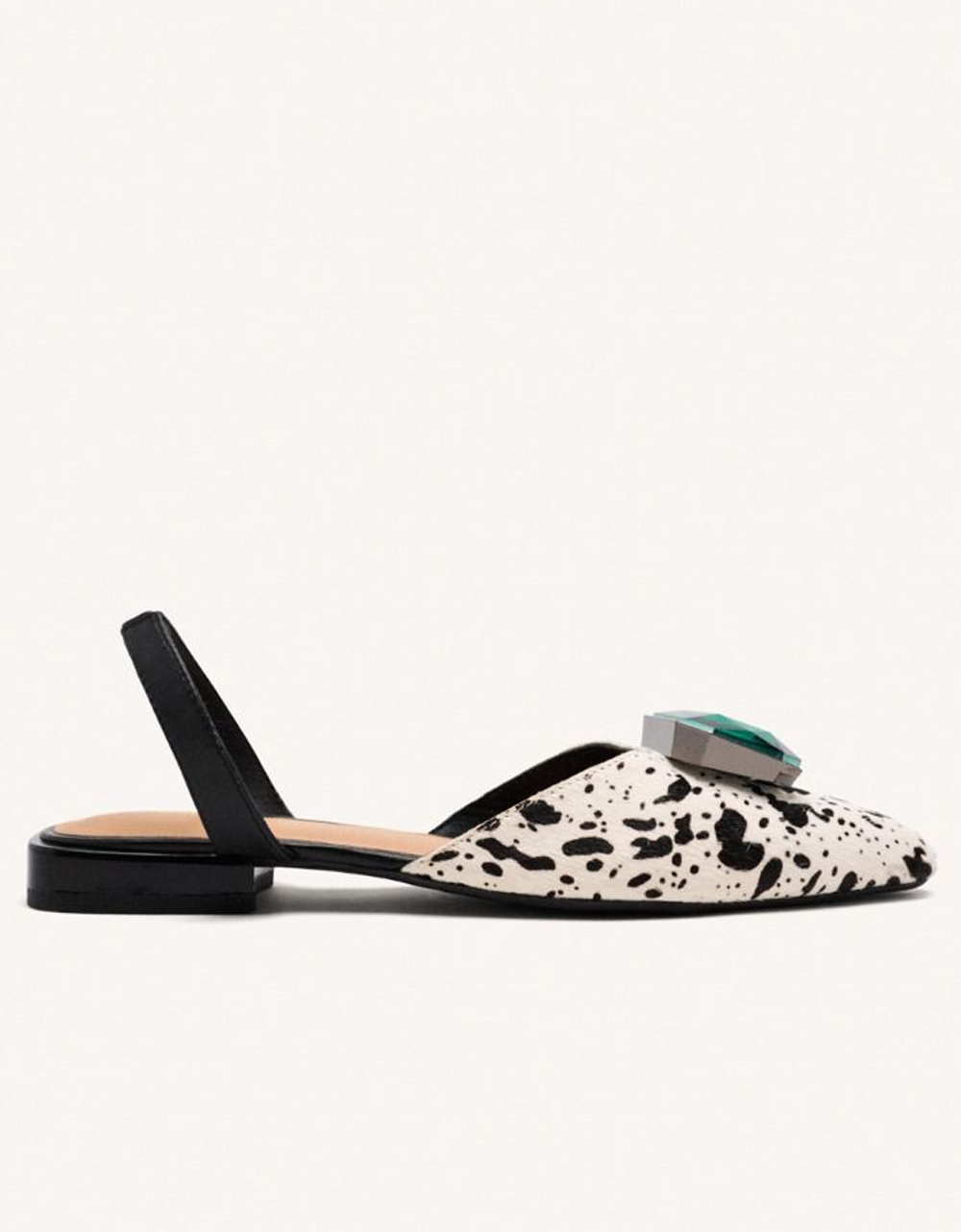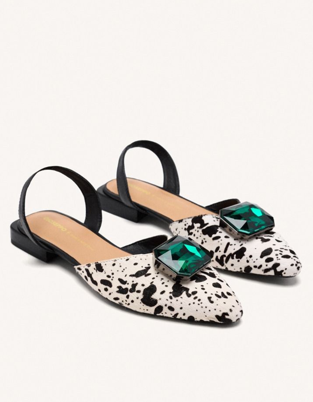 Δερμάτινα γοβάκια open heel με διακοσμητική πέτρα Λευκό/Μαύρο