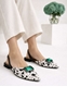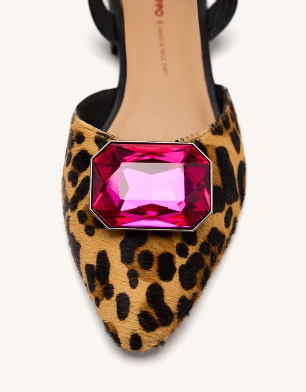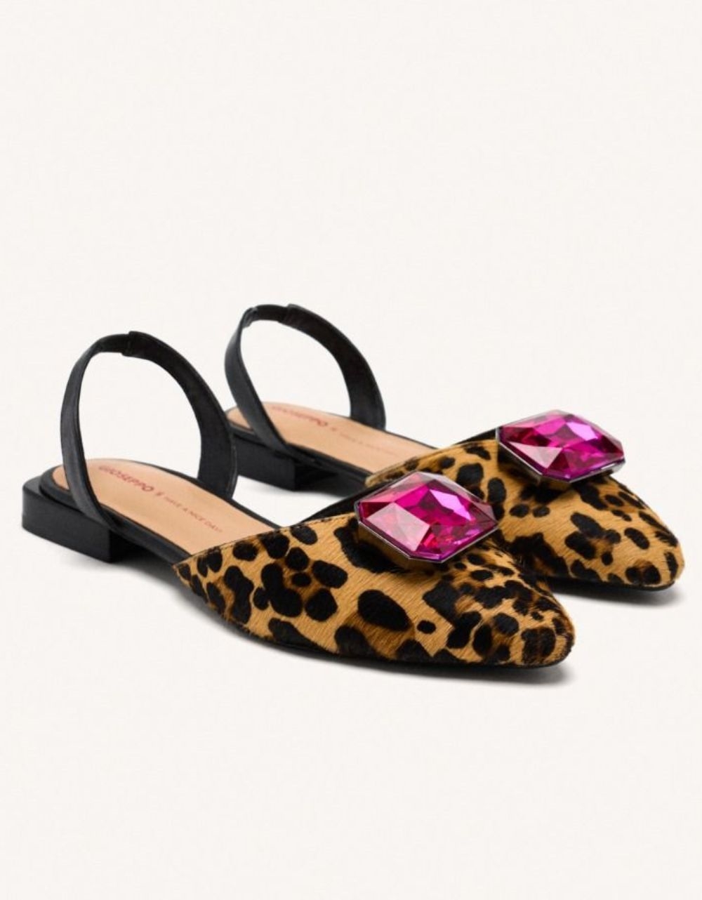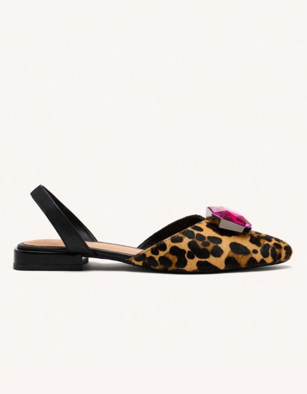 Δερμάτινα γοβάκια open heel με διακοσμητική πέτρα Λεοπάρ