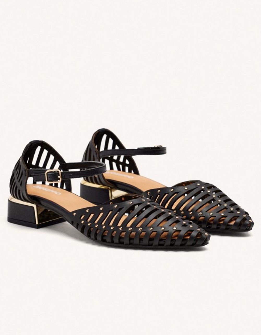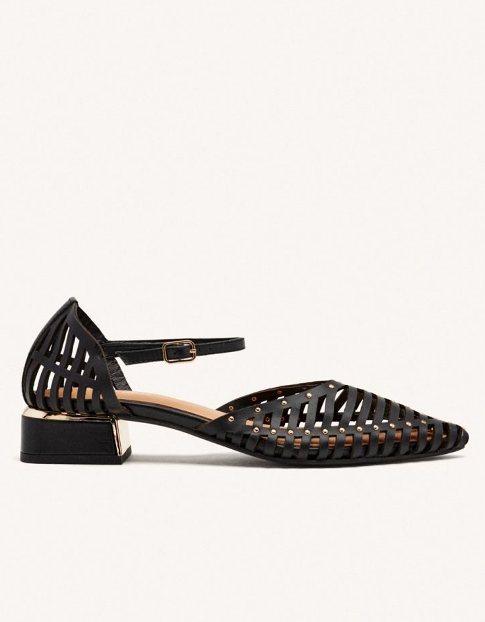 Δερμάτινες γόβες με ανοίγματα και τρουκς Μαύρο