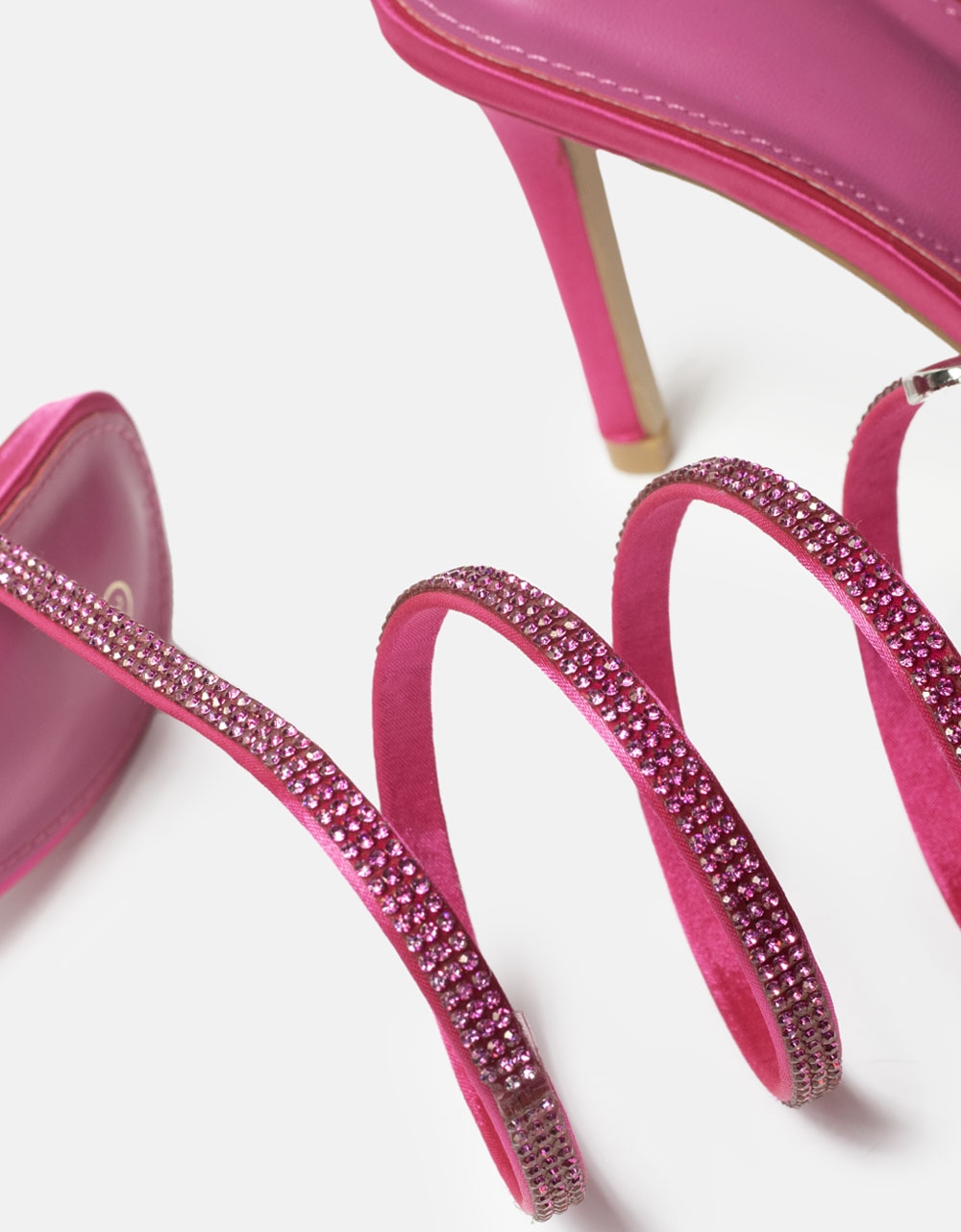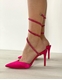 Lace up μυτερές γόβες με λεπτό τακούνι Φούξια