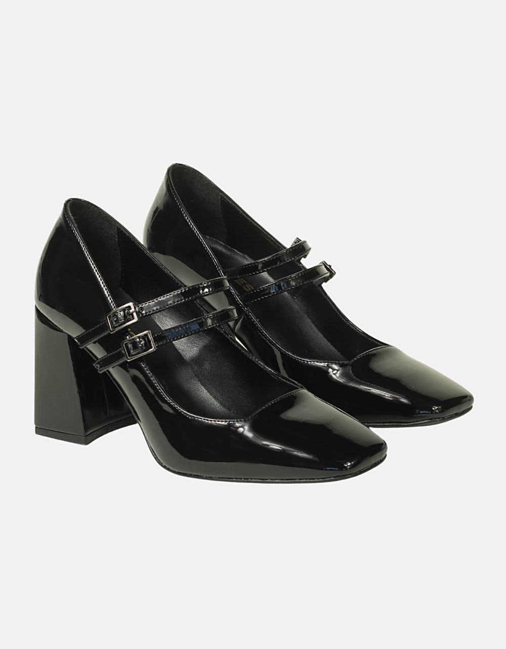 Λουστρίνι γόβες Ελληνικής κατασκευής με διπλή μπαρέτα Μαύρο