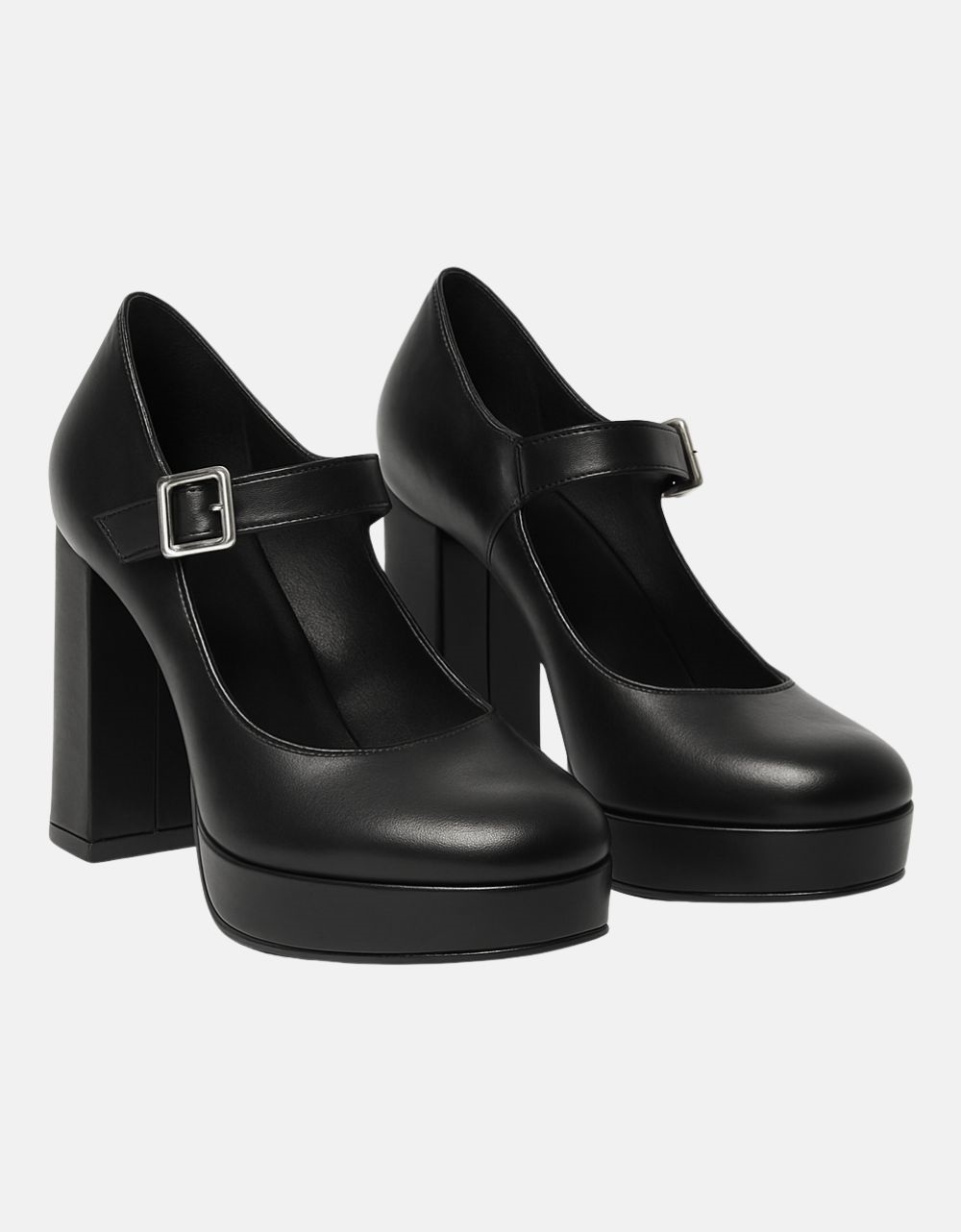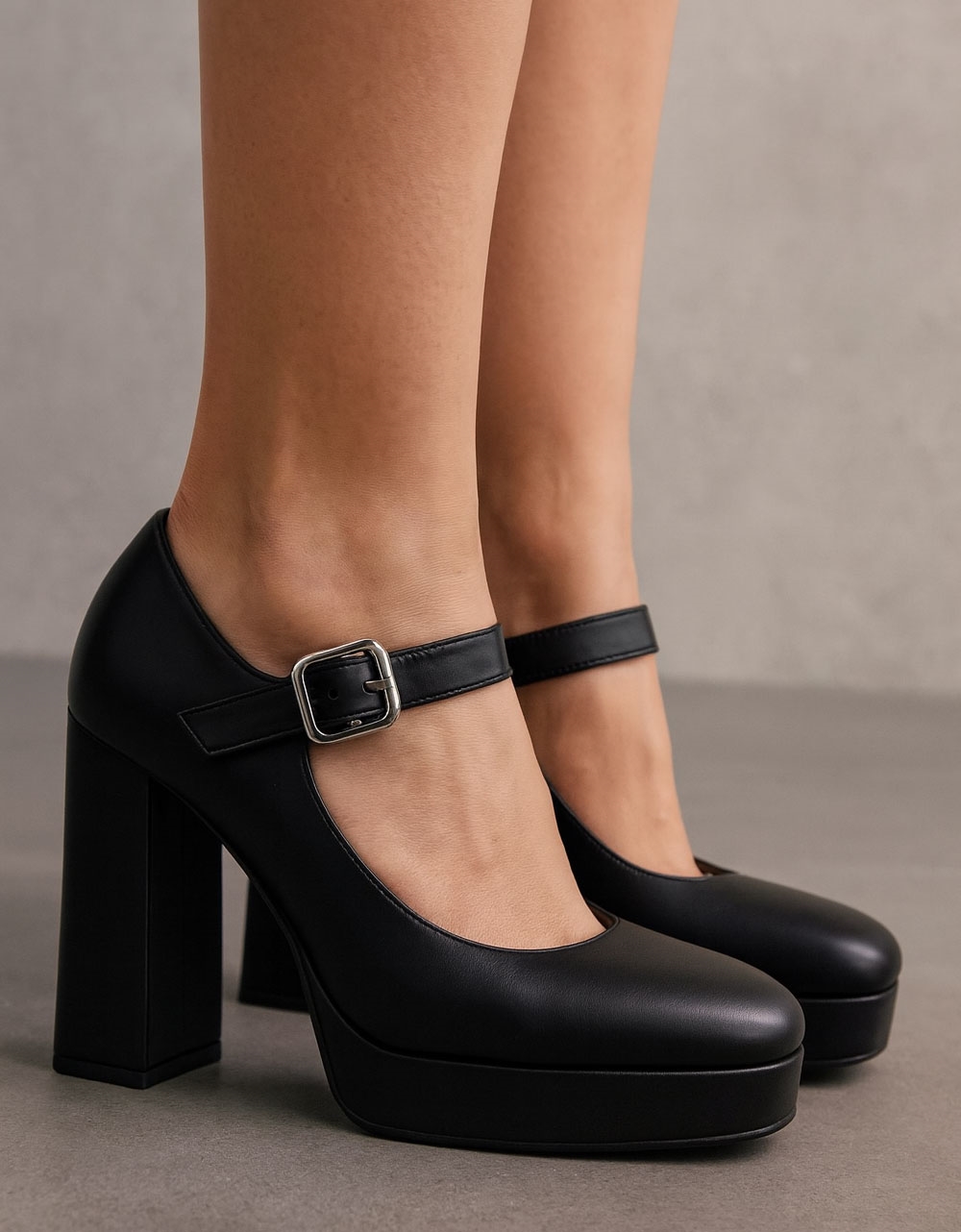 Μονόχρωμες mary jane γόβες Ελληνικής κατασκευής. Διαθέτουν τετράγωνο τακούνι και είναι κατασκευασμένες από άριστης ποιότητας δερματίνη.