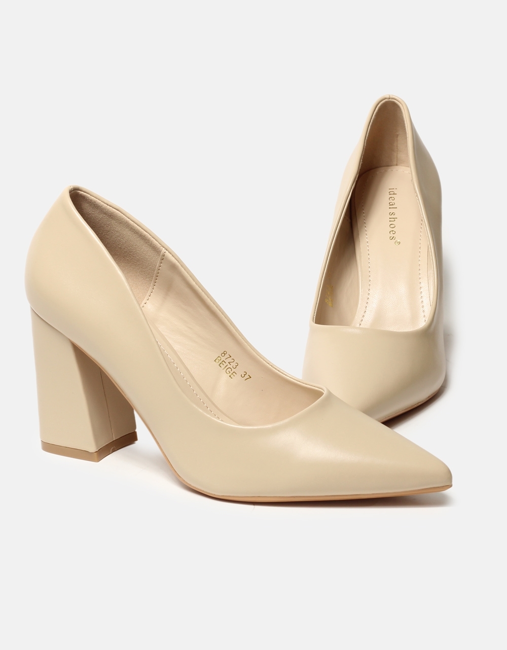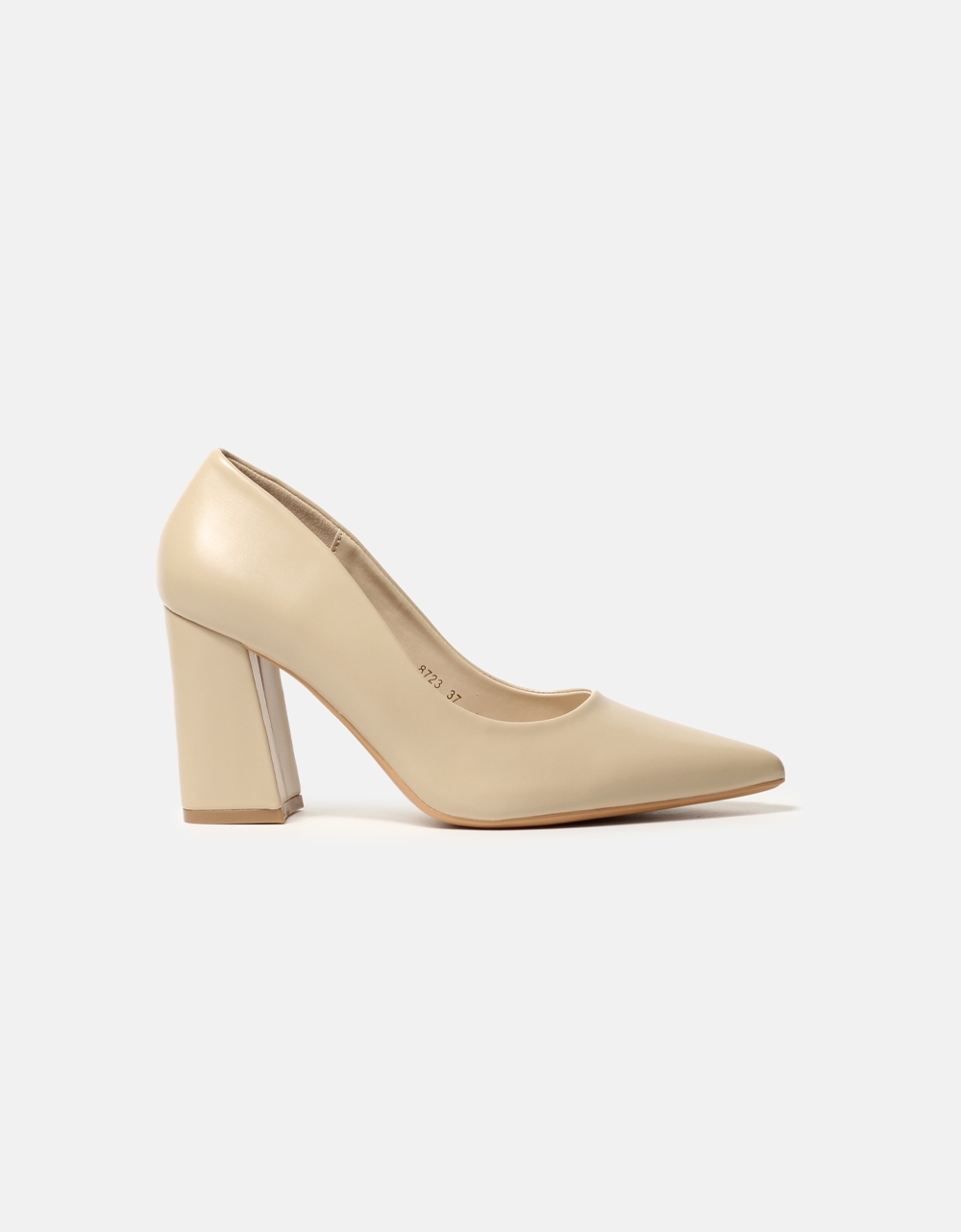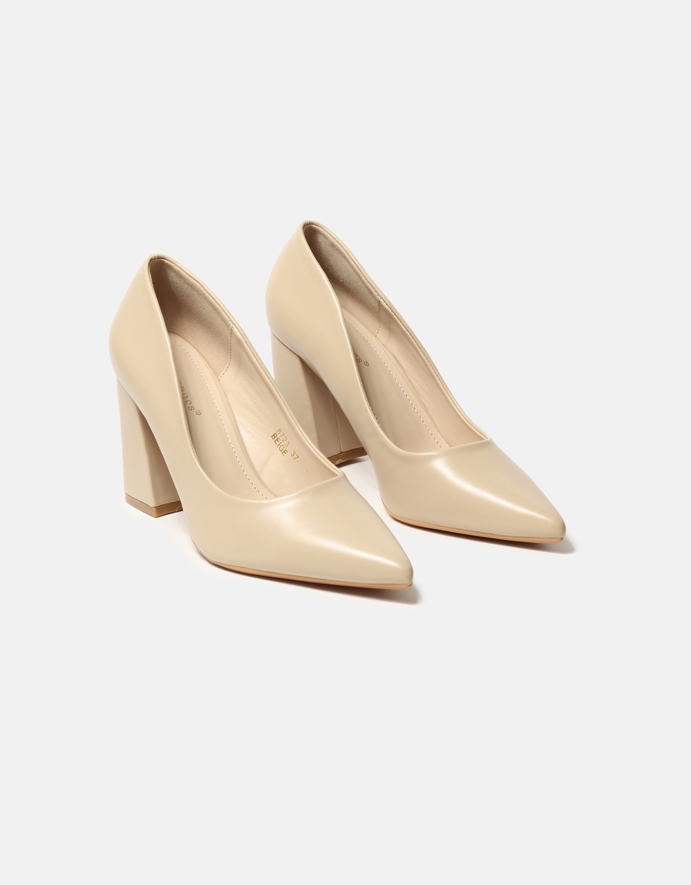 Μυτερές μονόχρωμες γόβες με τετράγωνο τακούνι Μπεζ