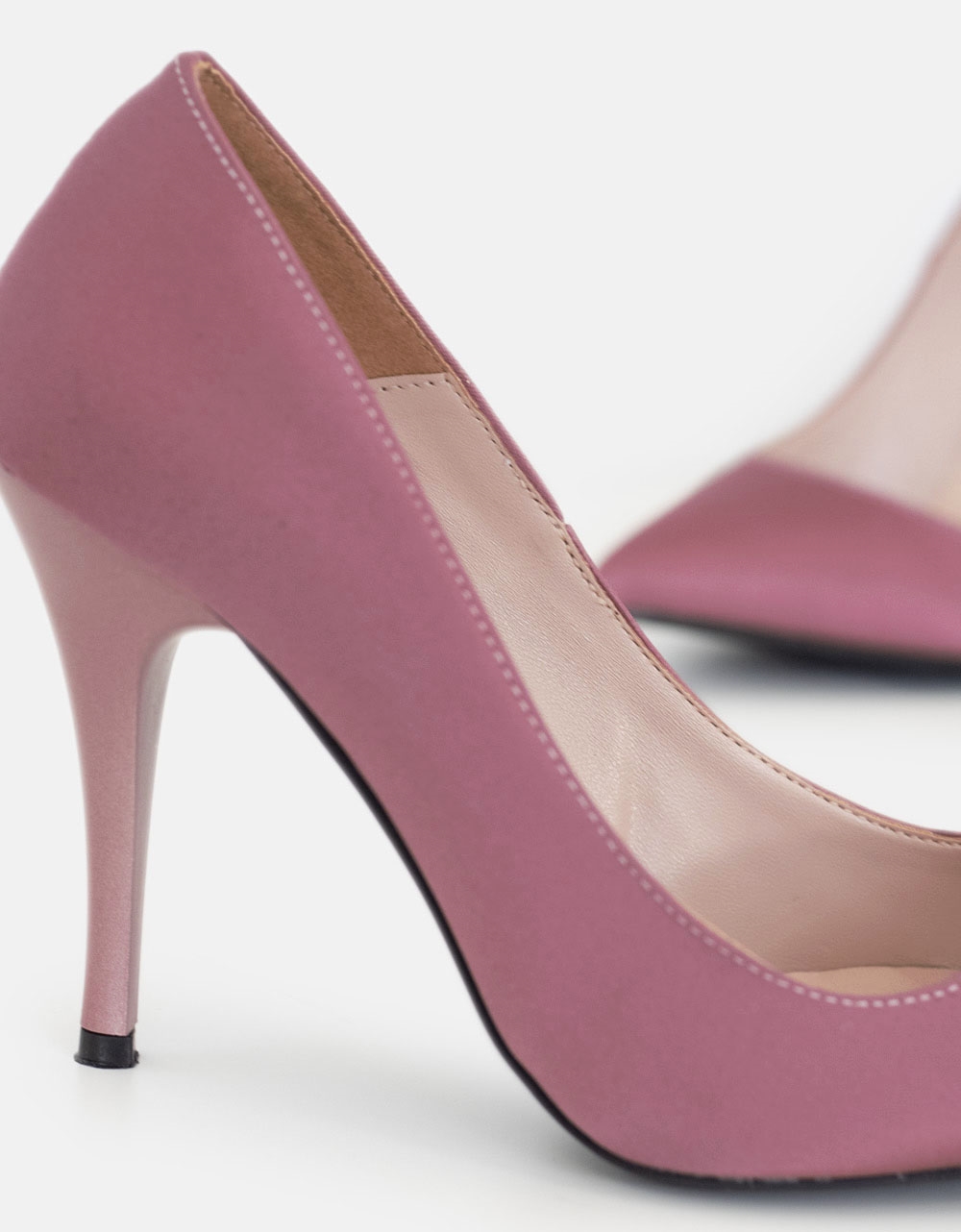 Μυτερές ψηλοτάκουνες σατέν γόβες Ελληνικής Κατασκευής Σομόν