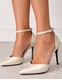 Μυτερές ψηλοτάκουνες σατέν γόβες με μπαρέτα Ελληνικής κατασκευής Σαμπανί