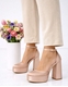 Ψηλοτάκουνες σατέν μονόχρωμες γόβες Ελληνικής κατασκευής Nude