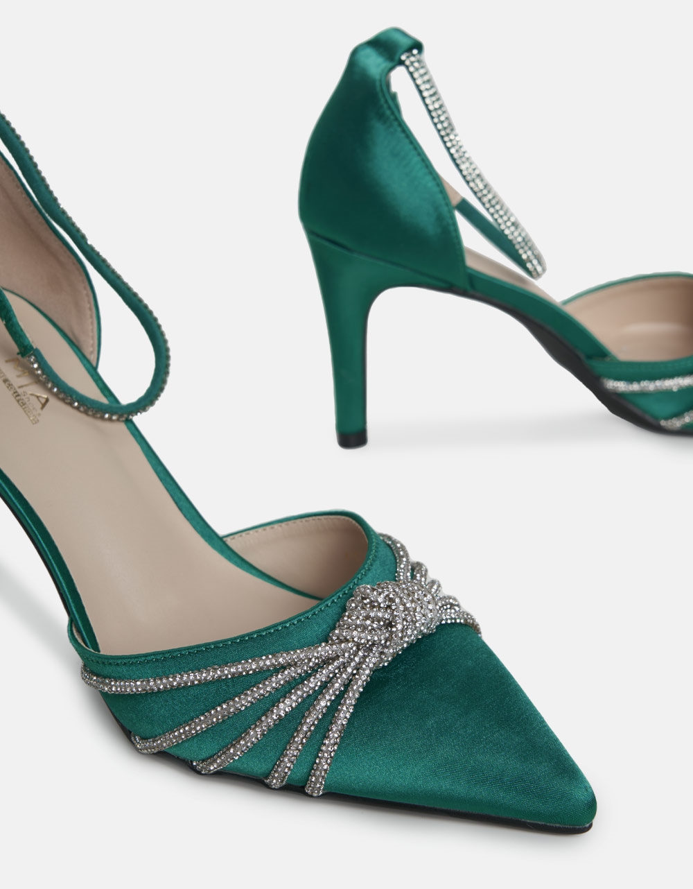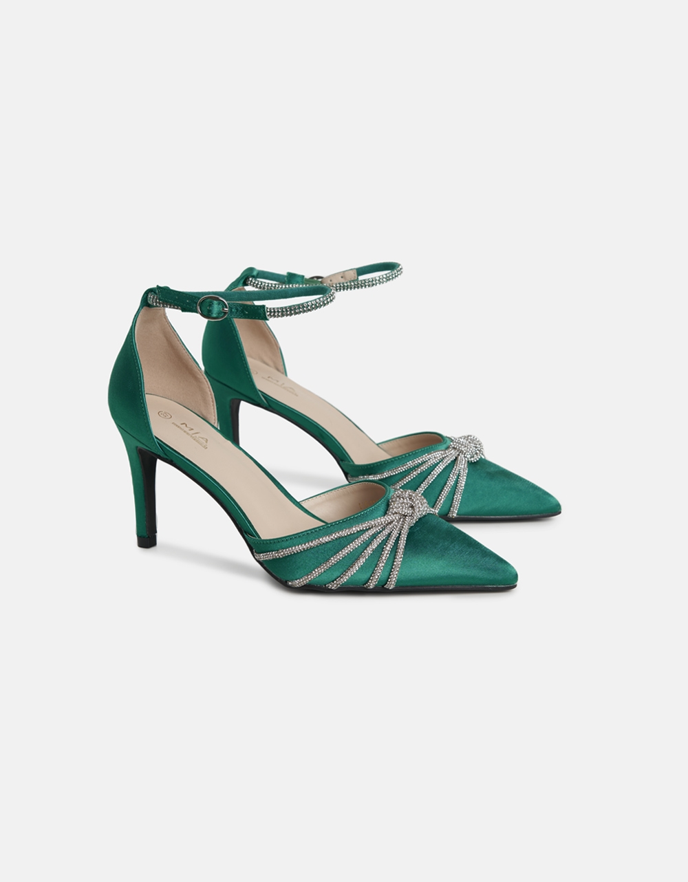 Σατέν γόβες με μπαρέτα και λεπτομέρειες με strass Πράσινο