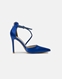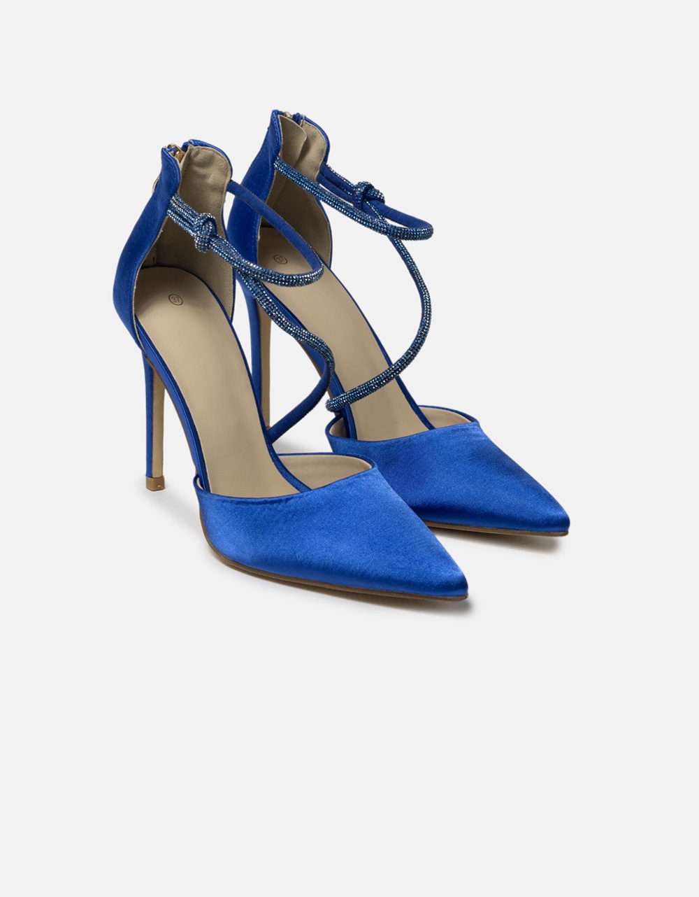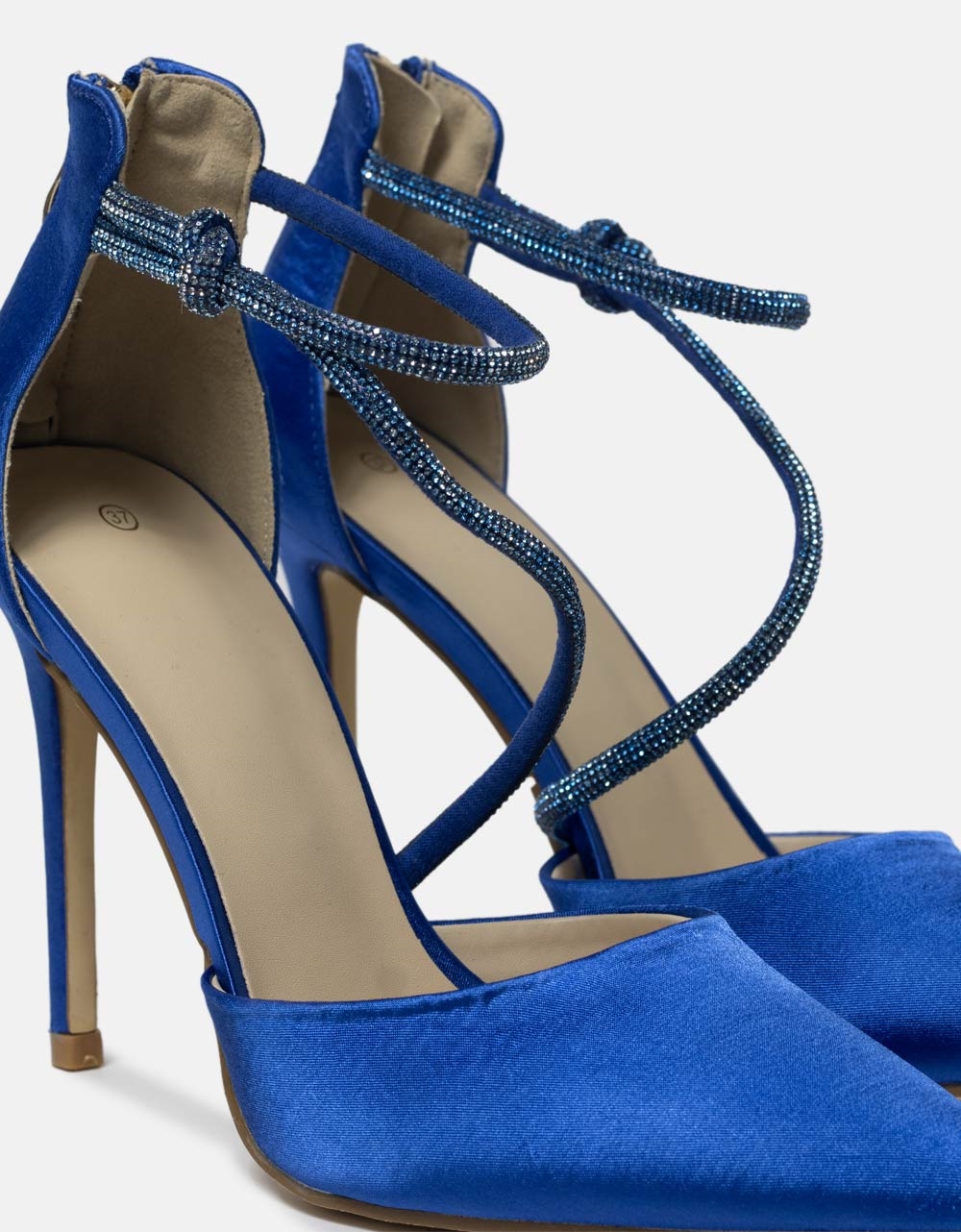 Σατέν μυτερές γόβες με λεπτό τακούνι και strass Μπλε