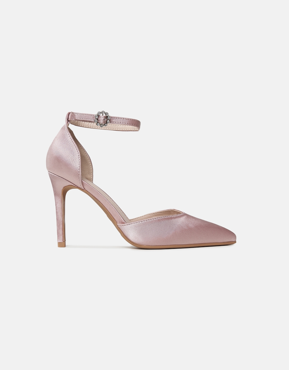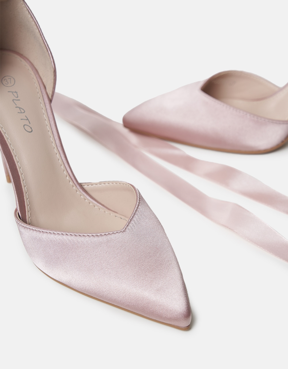 Σατέν μυτερές γόβες με μπαρέτα και κορδέλα Ροζ