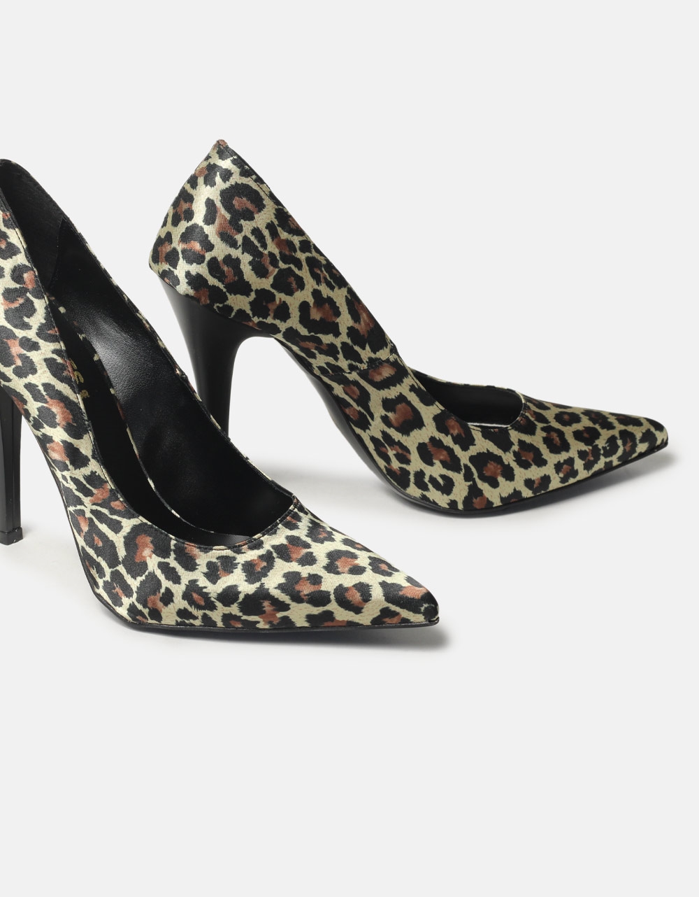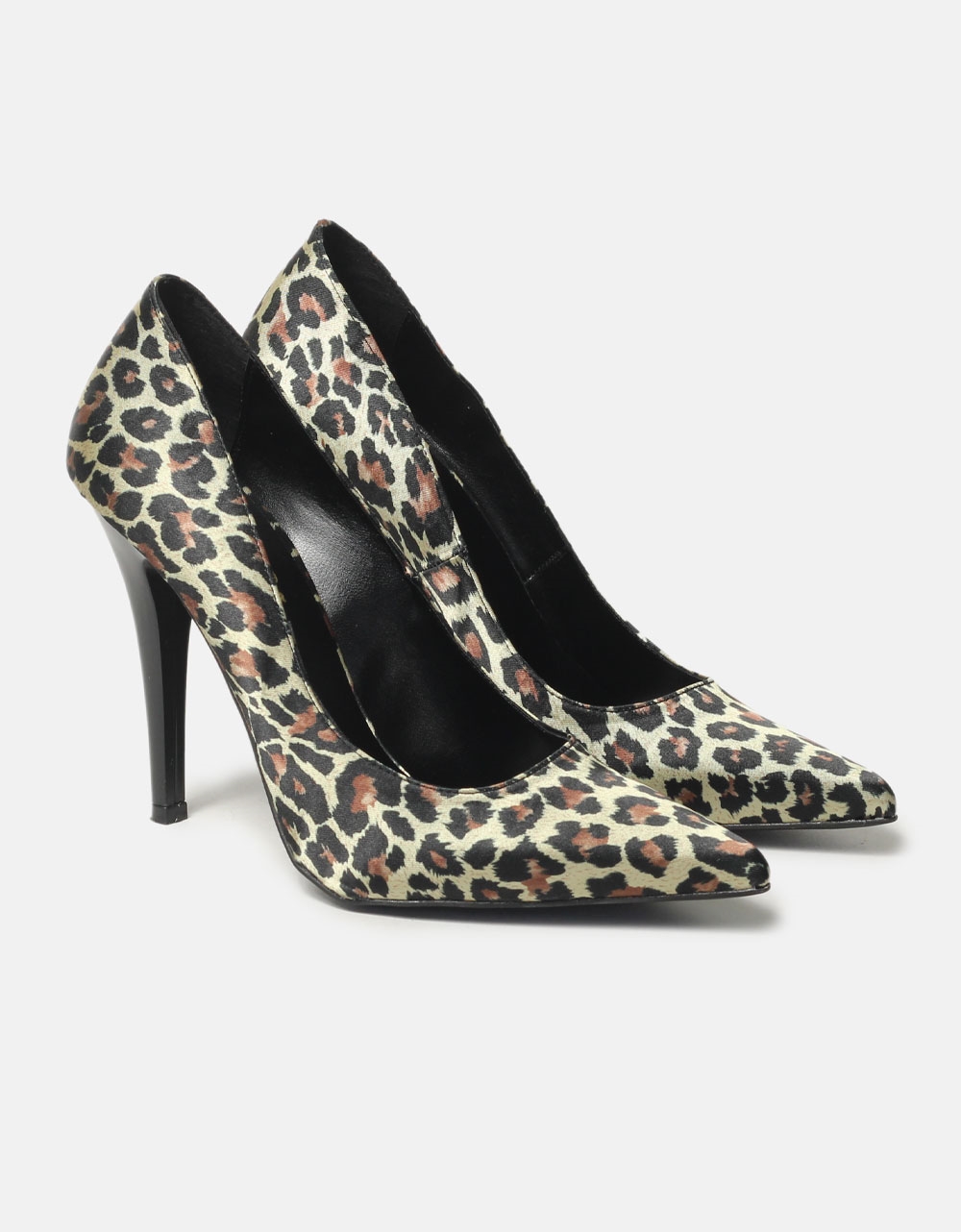Σατέν ψηλοτάκουνες μυτερές Ελληνικής κατασκευής γόβες Λεοπάρ