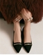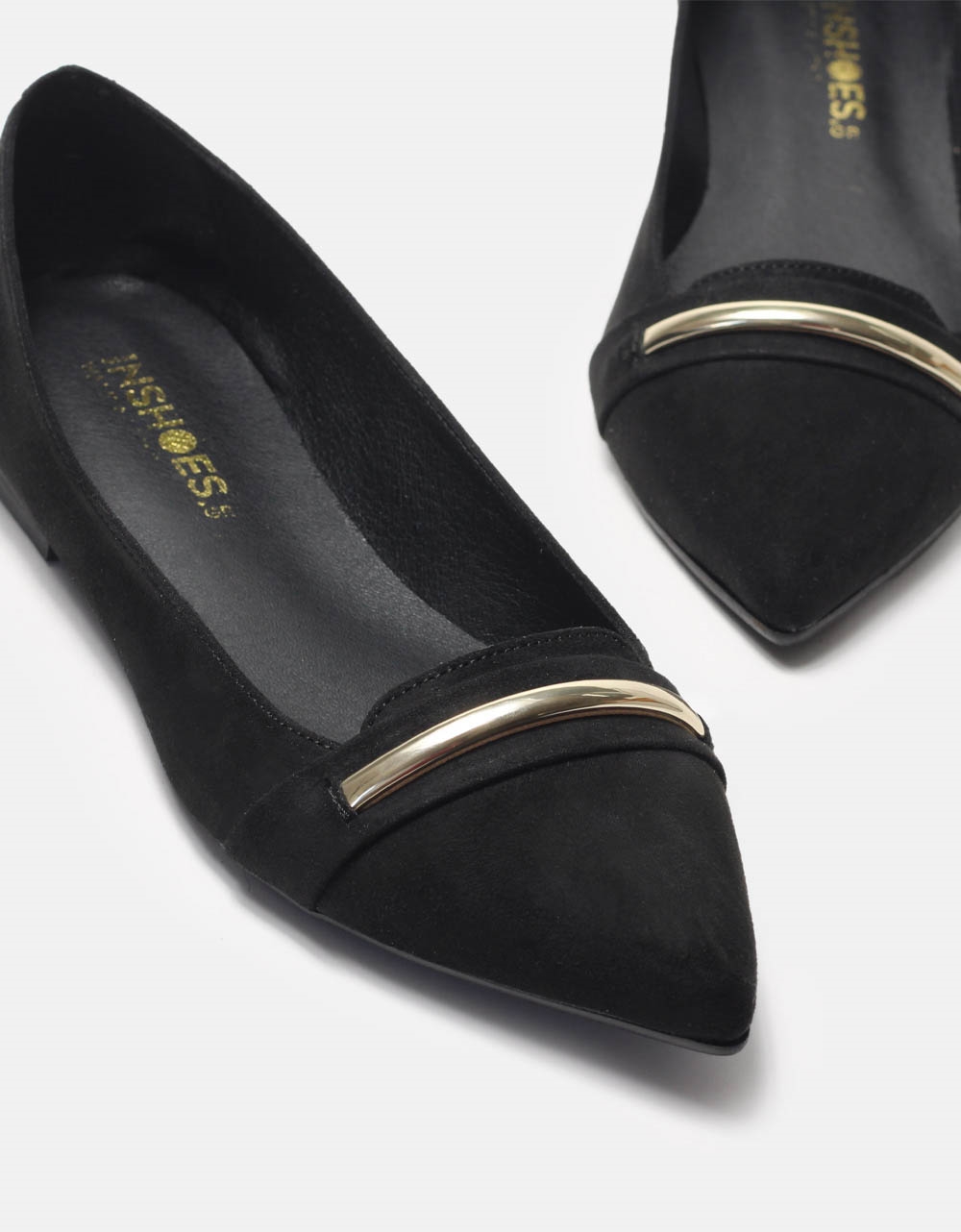 Suede γοβάκια Ελληνικής κατασκευής με μεταλλικό διακοσμητικό. Διαθέτουν πάτο από γνήσιο δέρμα και ελαστική σόλα για άνετο βάδισμα.