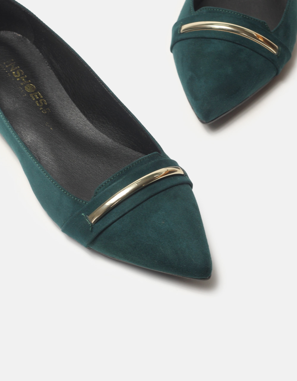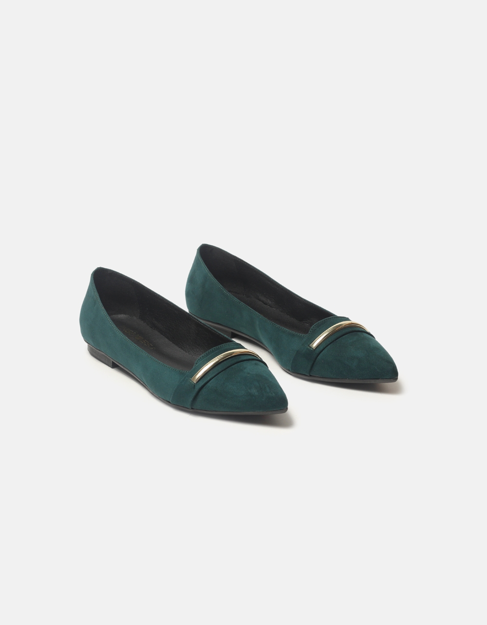Suede γοβάκια Ελληνικής κατασκευής με μεταλλικό διακοσμητικό. Διαθέτουν πάτο από γνήσιο δέρμα και ελαστική σόλα για άνετο βάδισμα.