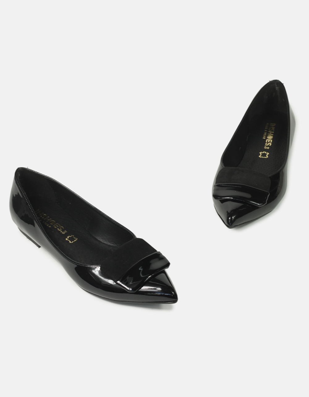 Μπαλαρίνες λουστρίνι με διακοσμητικό στοιχείο Ελληνικής καστασκευής. Διαθέτουν ελαστική-αντιολισθητική σόλα και πάτο από γνήσιο δέρμα για άνετο βάδισμα.
