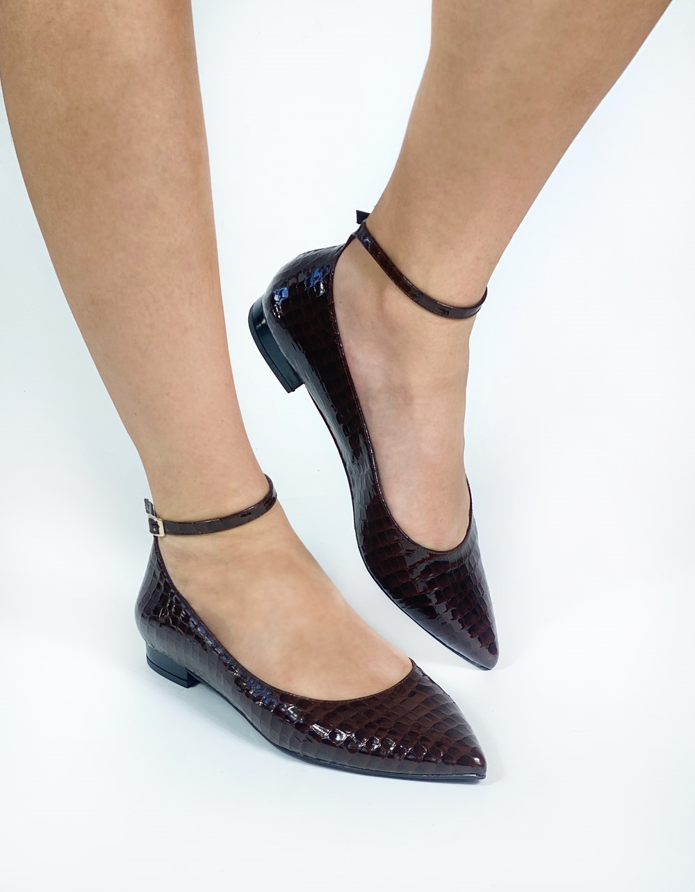 Μυτερές κροκό μπαλαρίνες Ελληνικής κατασκευής σε απλή γραμμή Μπορντώ