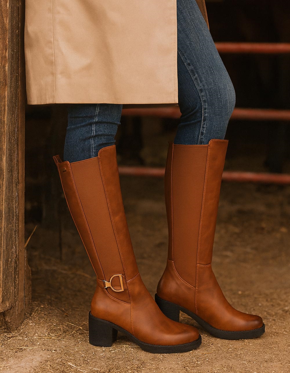 Γυναικείες μπότες με μεταλλική αγκράφα και λάστιχο Ταμπά