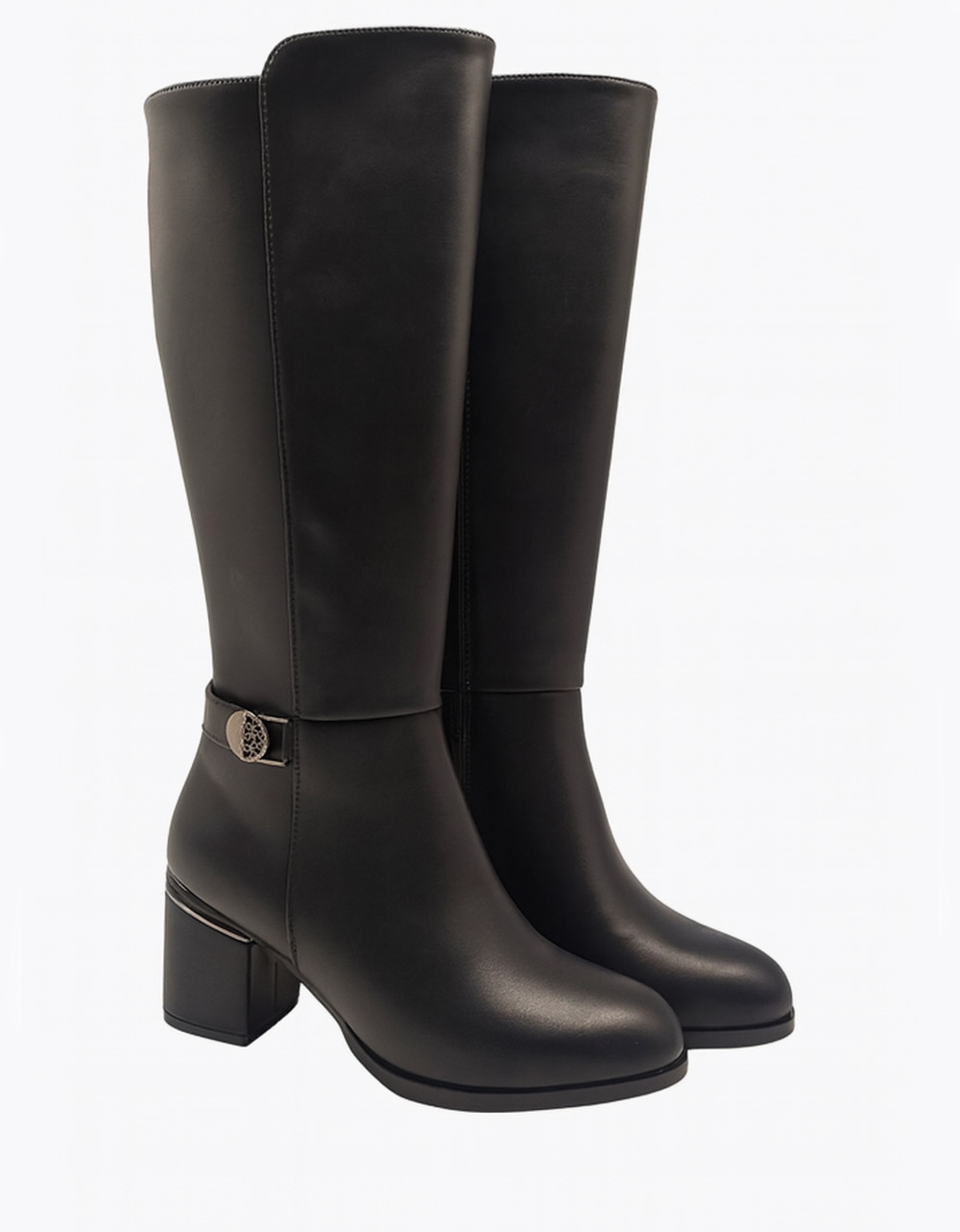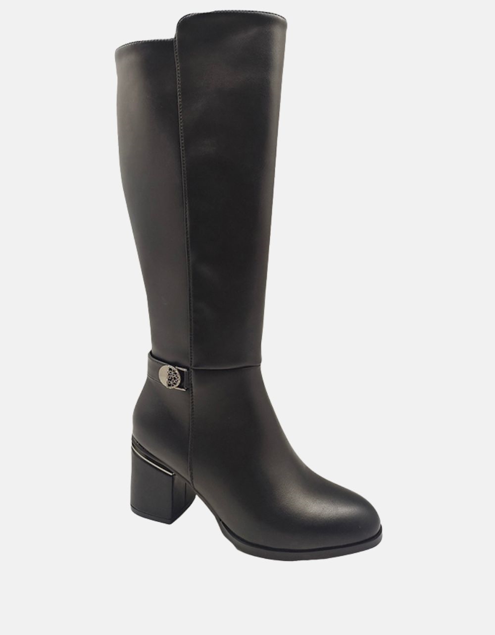 Γυναικείες μπότες με μεταλλικό διακοσμητικό στοίχειο Μαύρο