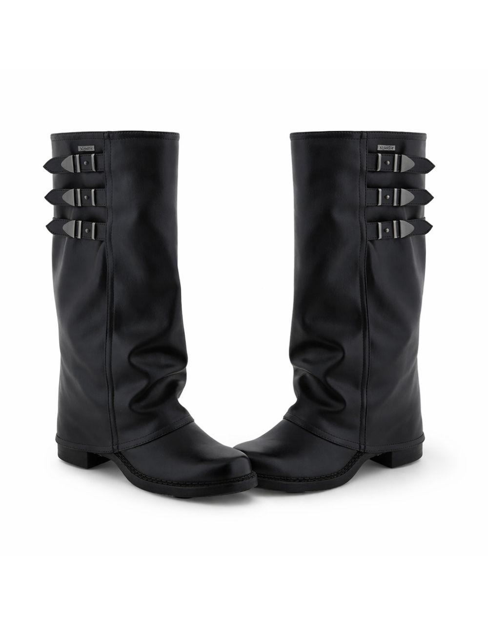 Μονόχρωμες μπότες με γκέτα και λουράκια Μαύρο
